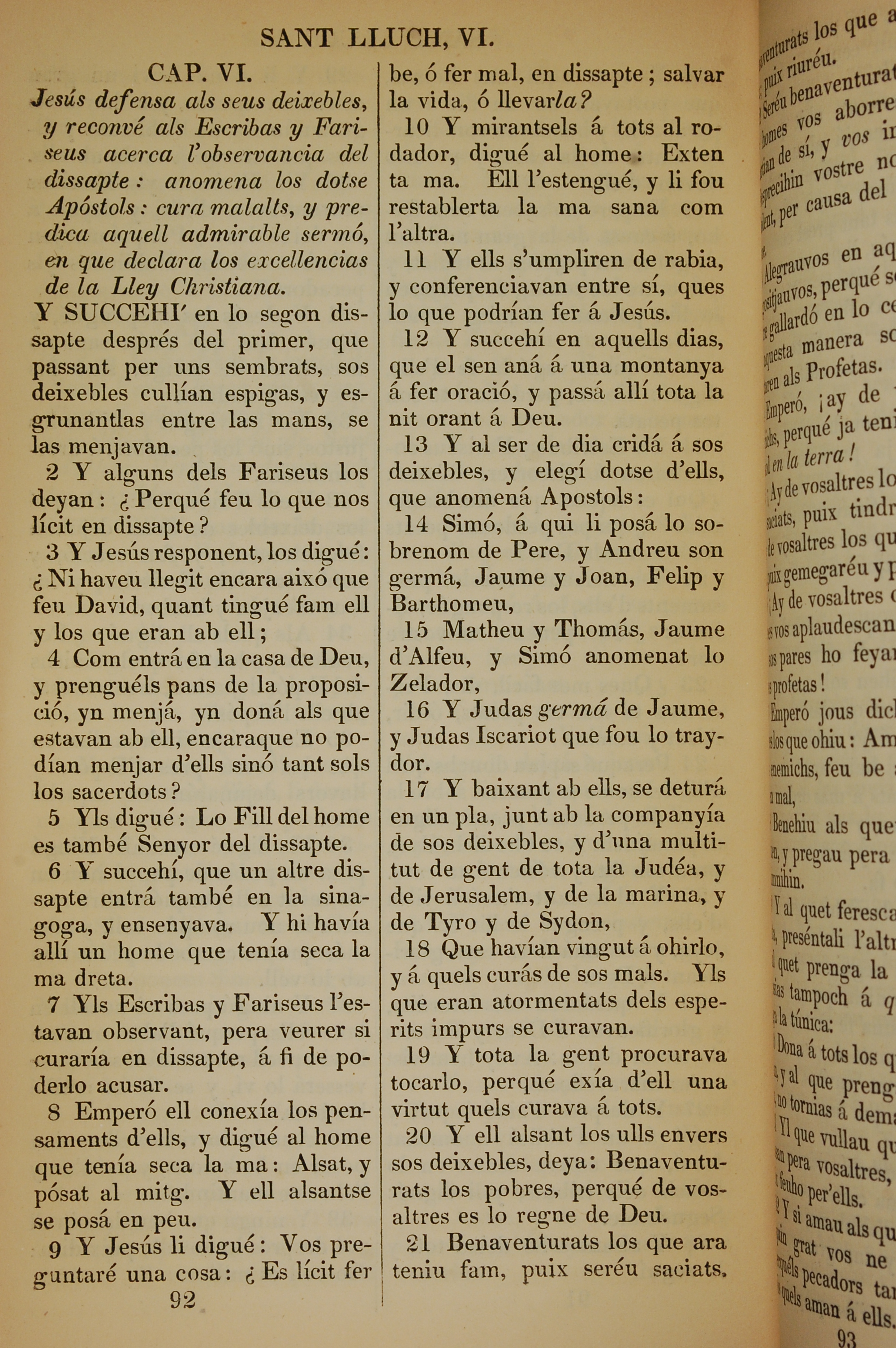 1835年加泰羅尼亞語新約全書 路加福音 6 章 1 節到 6 章 21 節