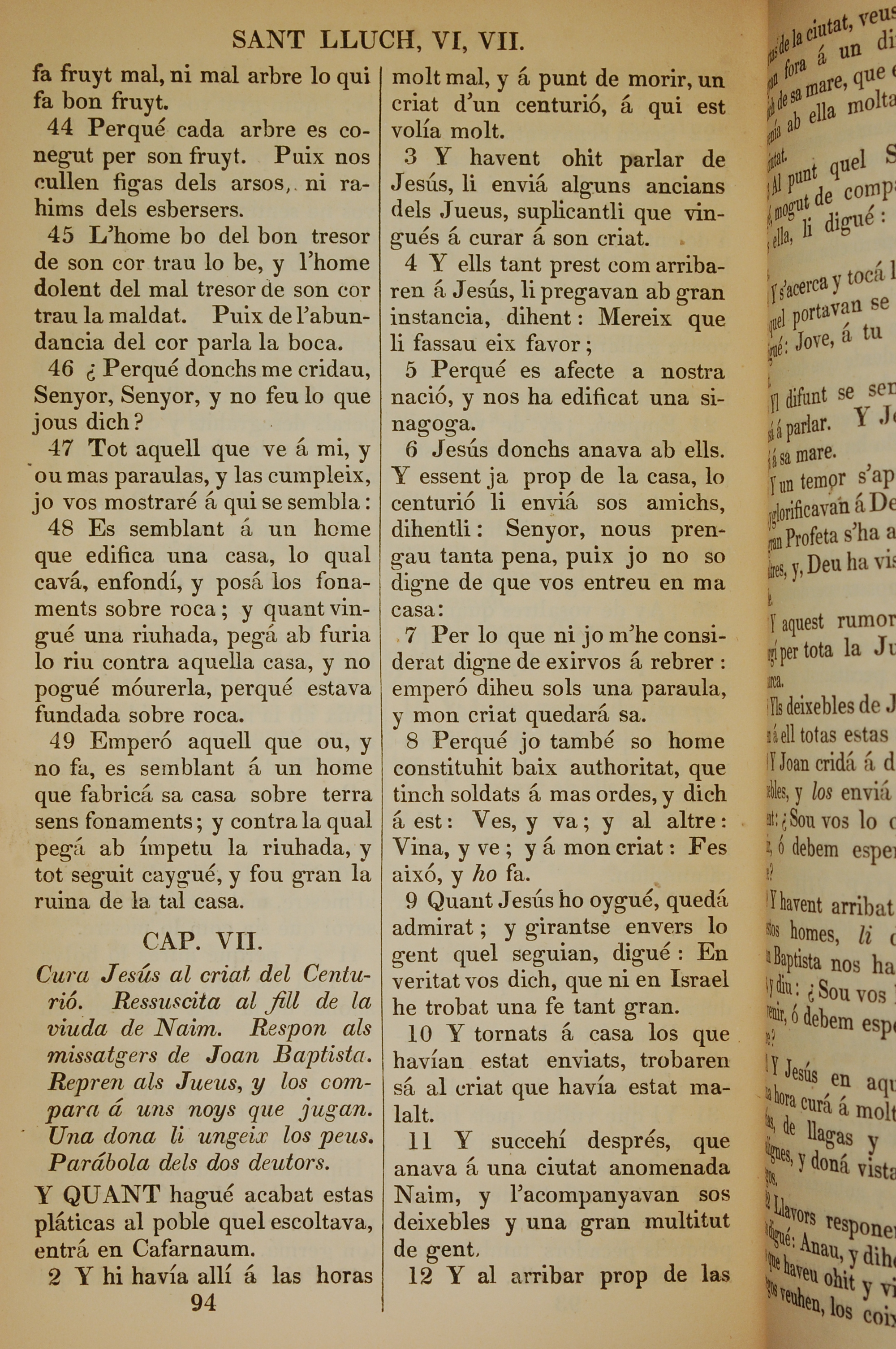 1835年加泰羅尼亞語新約全書 路加福音 6 章 44 節到 7 章 12 節