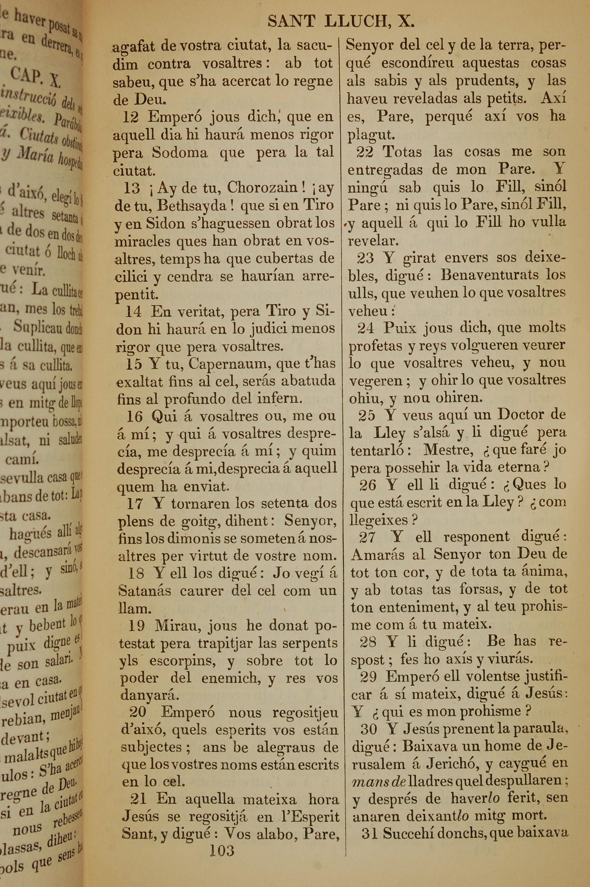 1835年加泰羅尼亞語新約全書 路加福音 10 章 12 節到 10 章 31 節