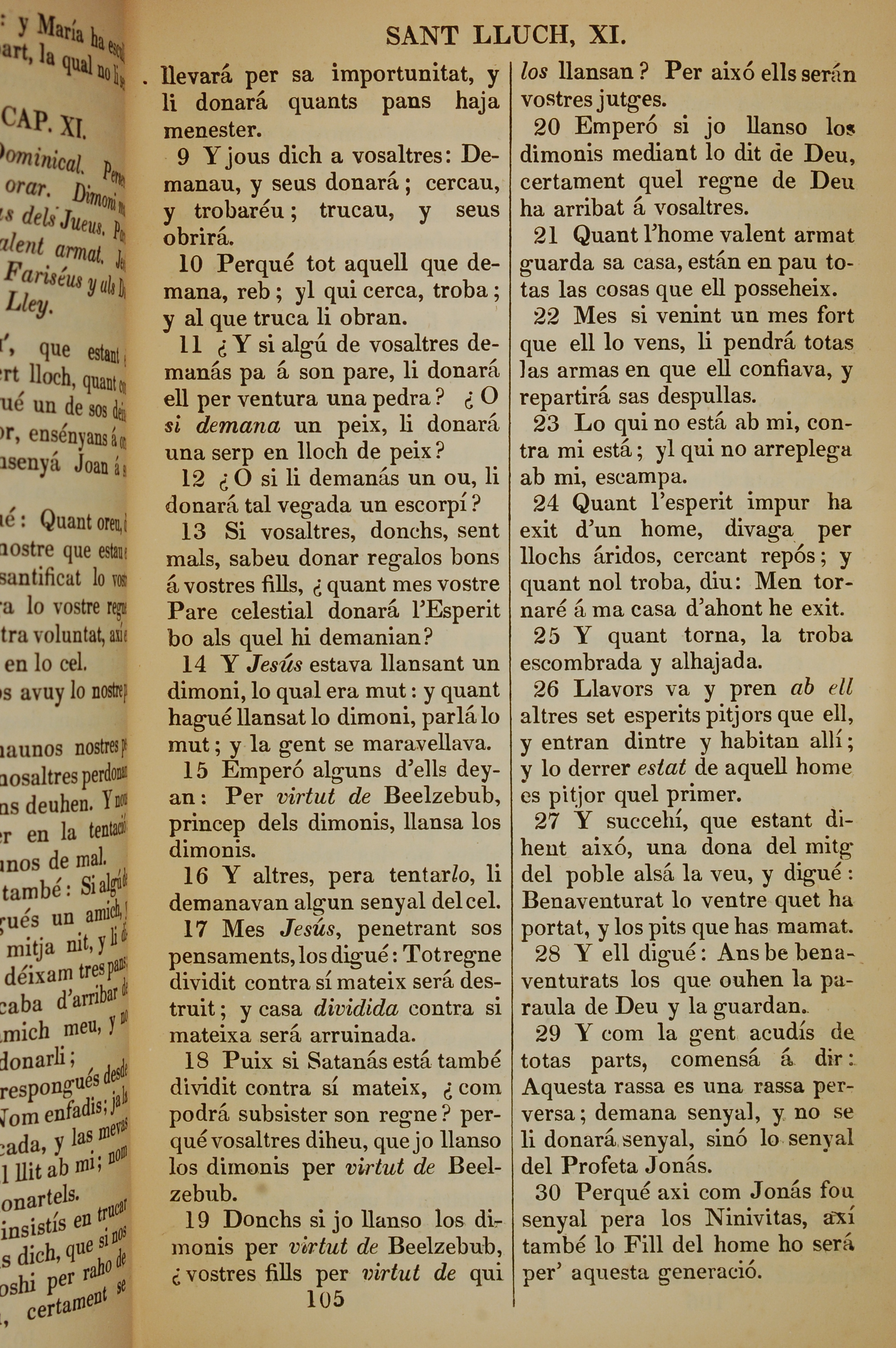 1835年加泰羅尼亞語新約全書 路加福音 11 章 9 節到 11 章 30 節