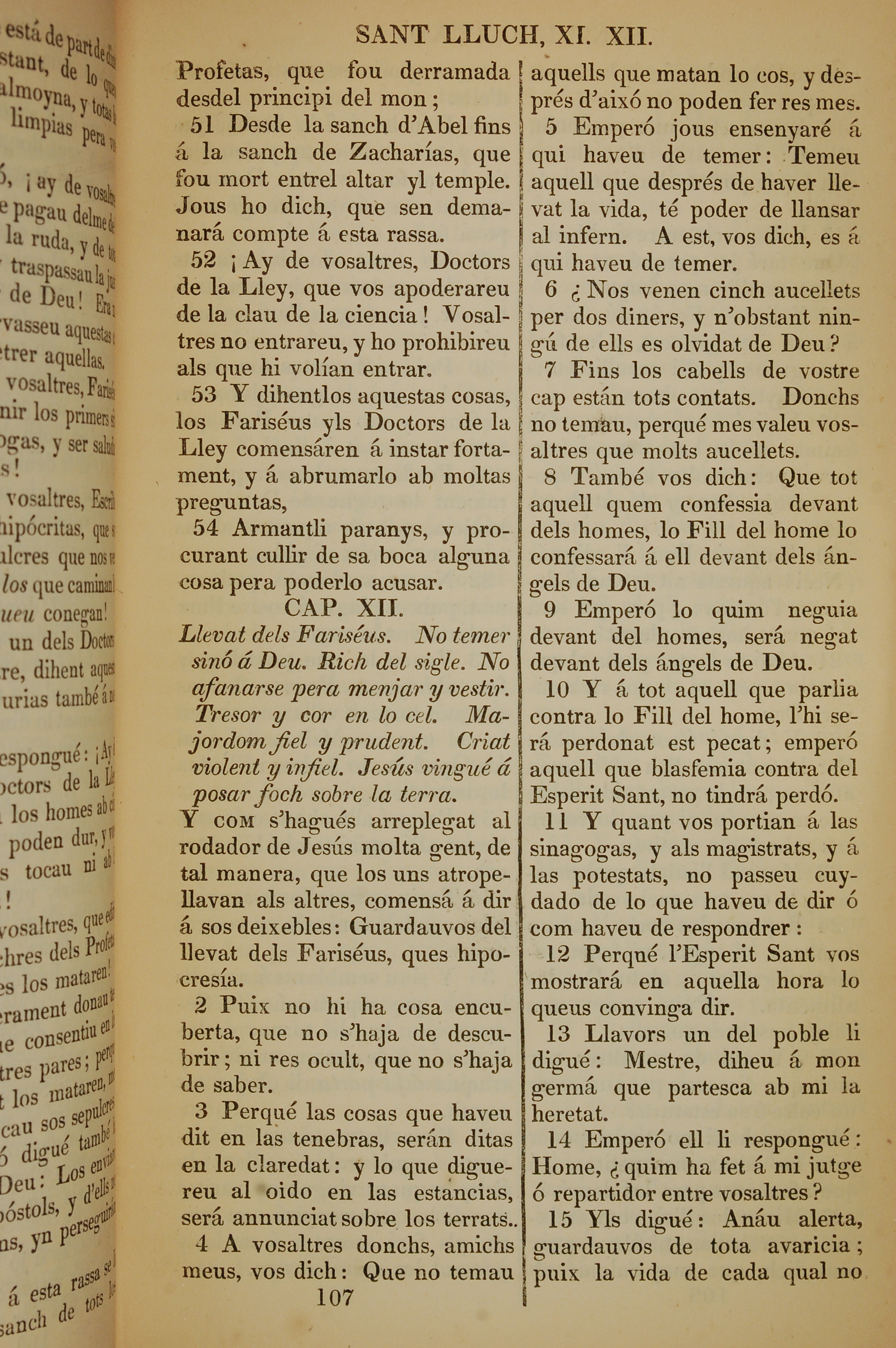 1835年加泰羅尼亞語新約全書 路加福音 11 章 51 節到 12 章 15 節