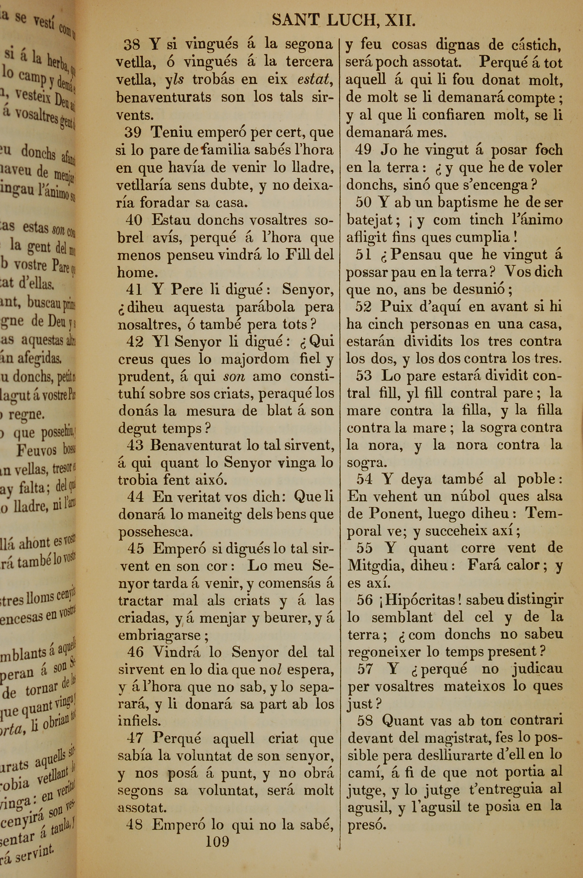 1835年加泰羅尼亞語新約全書 路加福音 12 章 38 節到 12 章 58 節