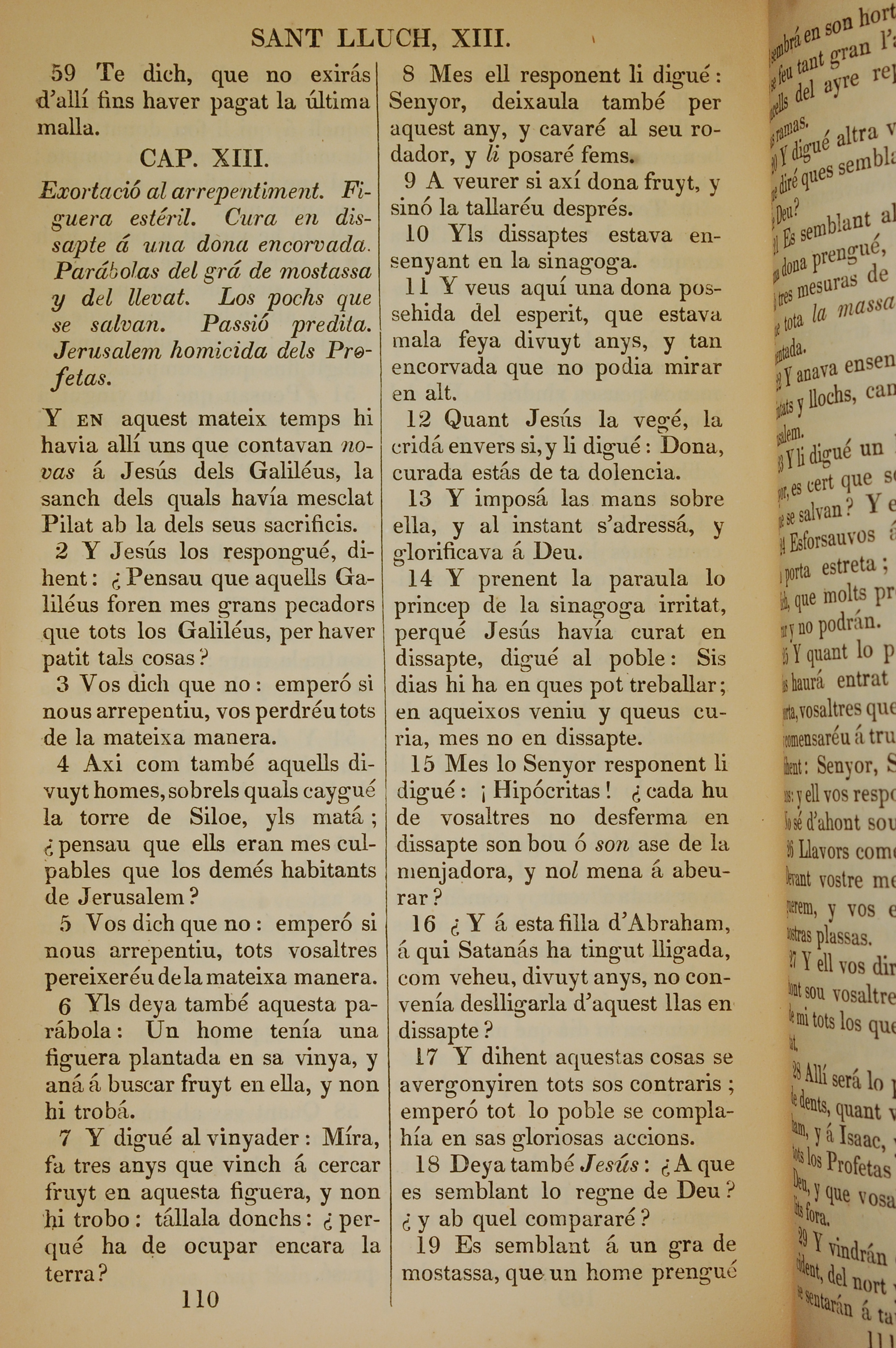 1835年加泰羅尼亞語新約全書 路加福音 12 章 59 節到 13 章 19 節