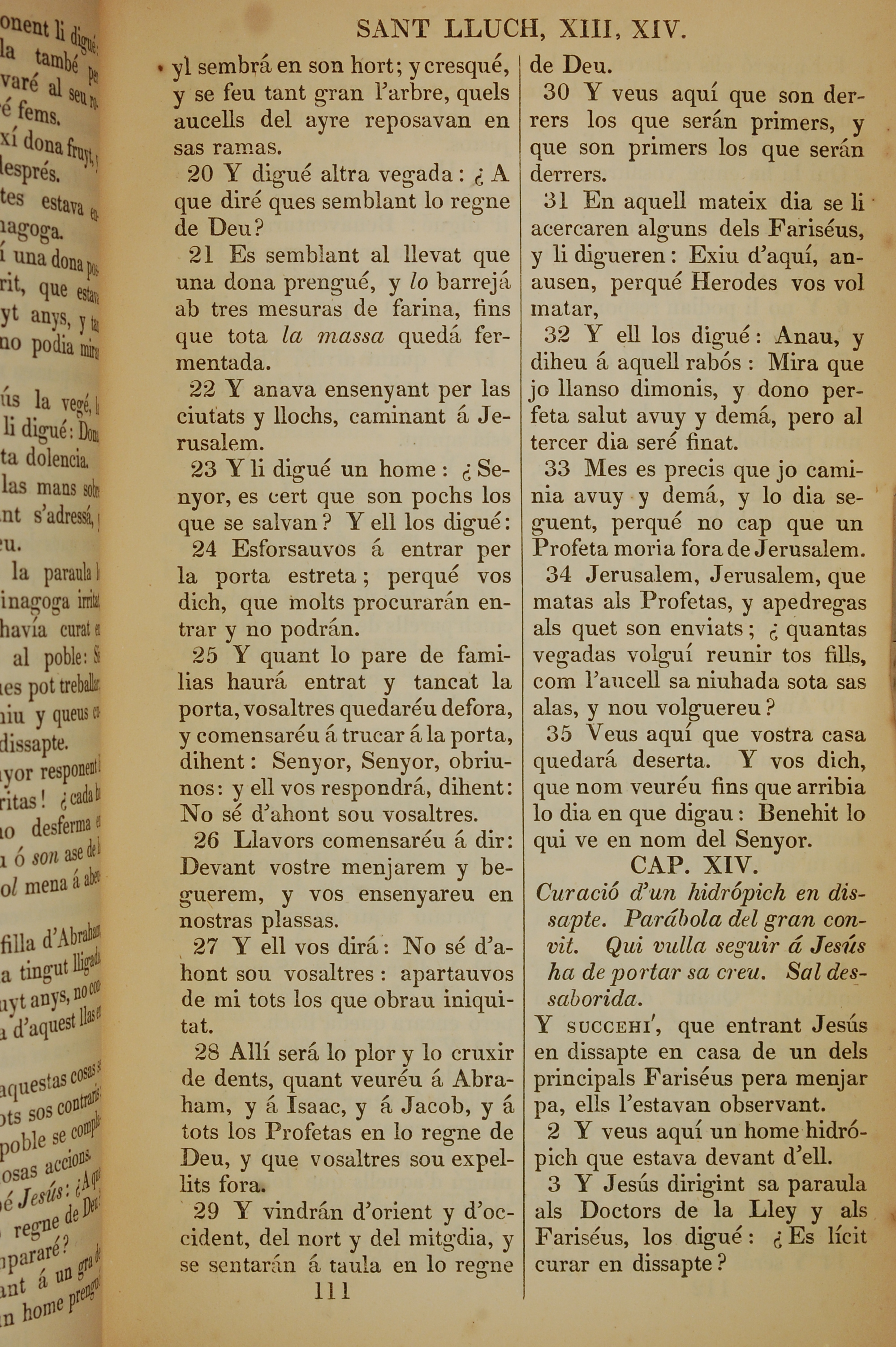 1835年加泰羅尼亞語新約全書 路加福音 13 章 20 節到 14 章 3 節