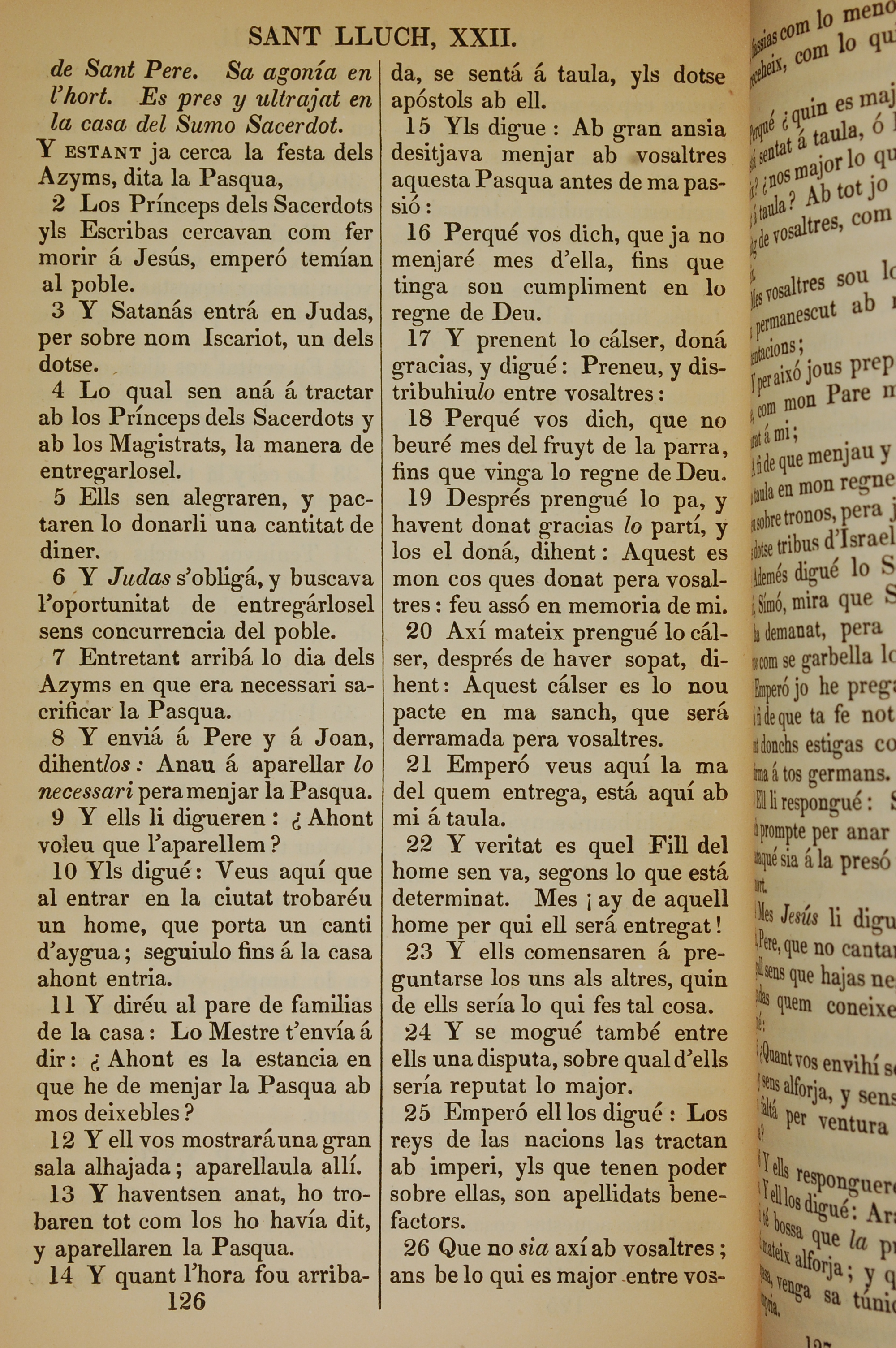 1835年加泰羅尼亞語新約全書 路加福音 22 章 1 節到 22 章 26 節