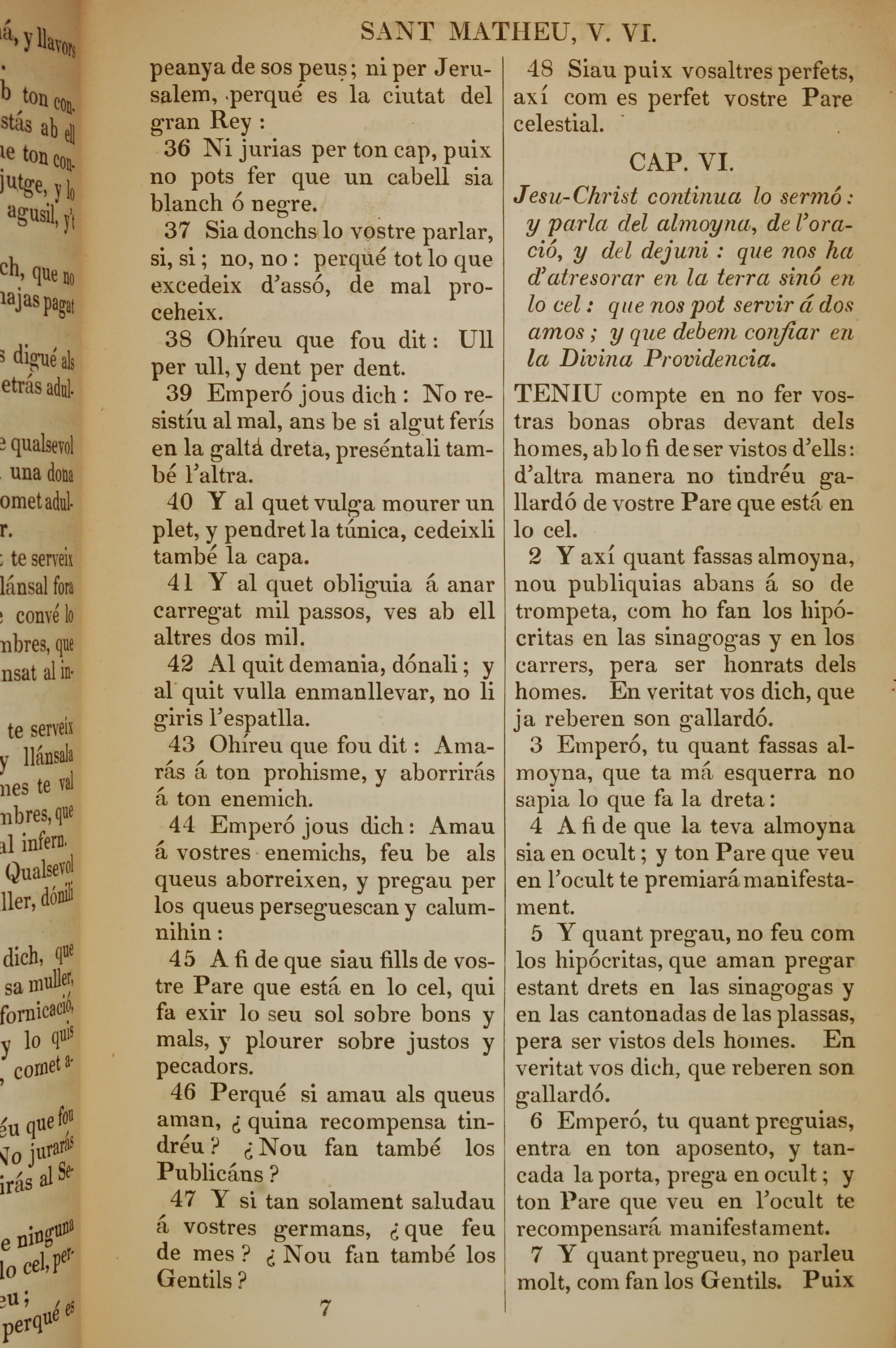 1835年加泰羅尼亞語新約全書 馬太福音 5 章 36 節到 6 章 7 節