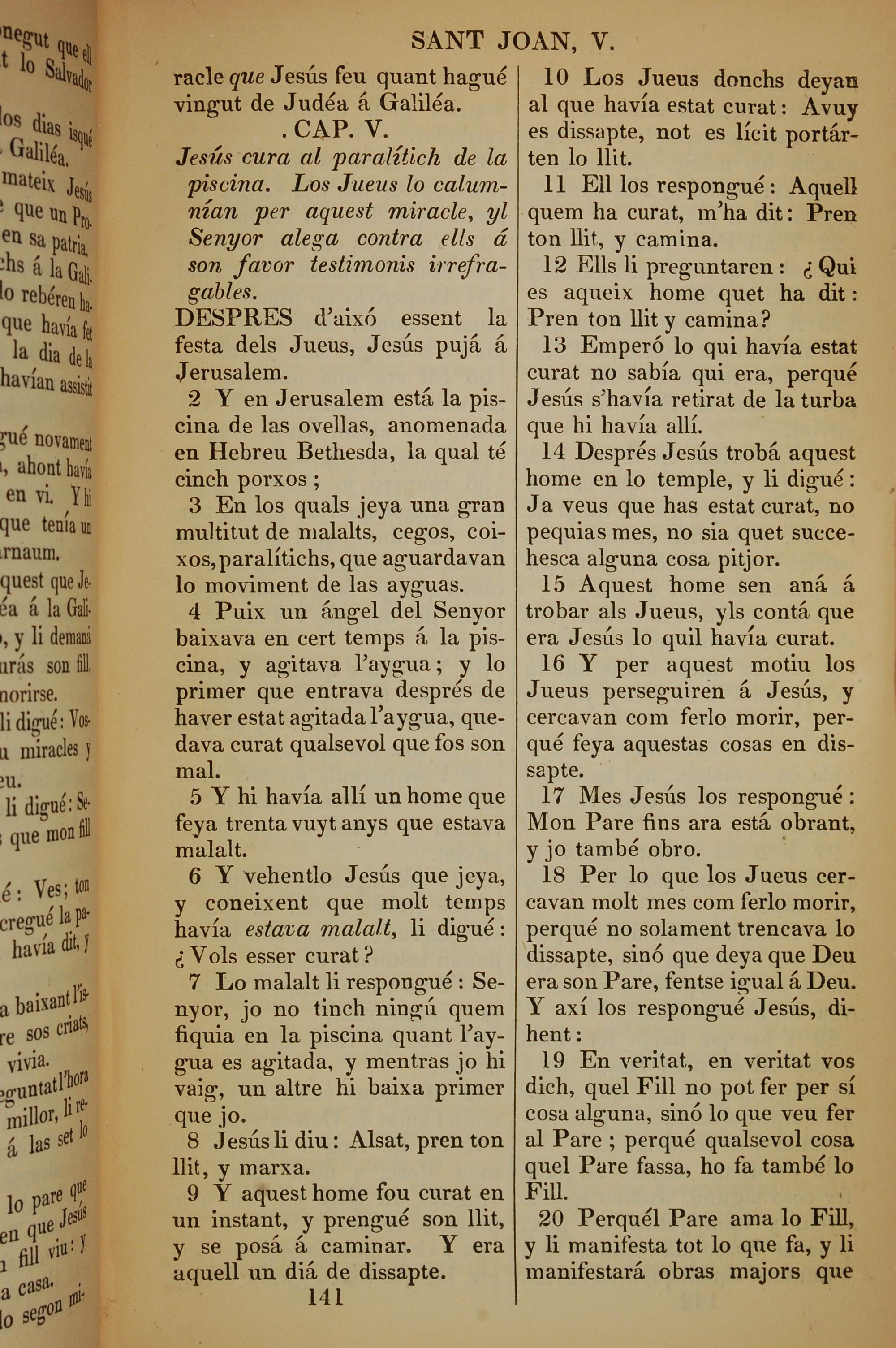 1835年加泰羅尼亞語新約全書 約翰福音 5 章 1 節到 5 章 20 節