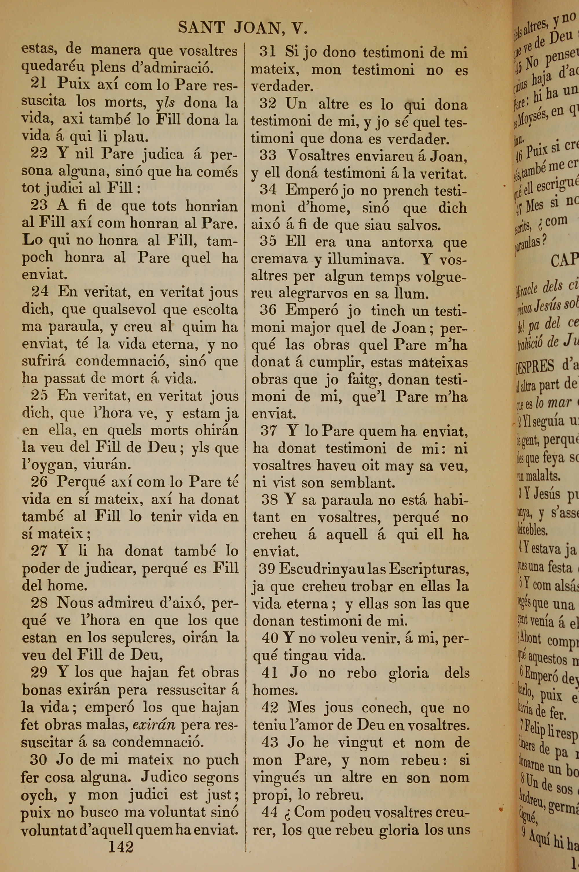 1835年加泰羅尼亞語新約全書 約翰福音 5 章 21 節到 5 章 44 節