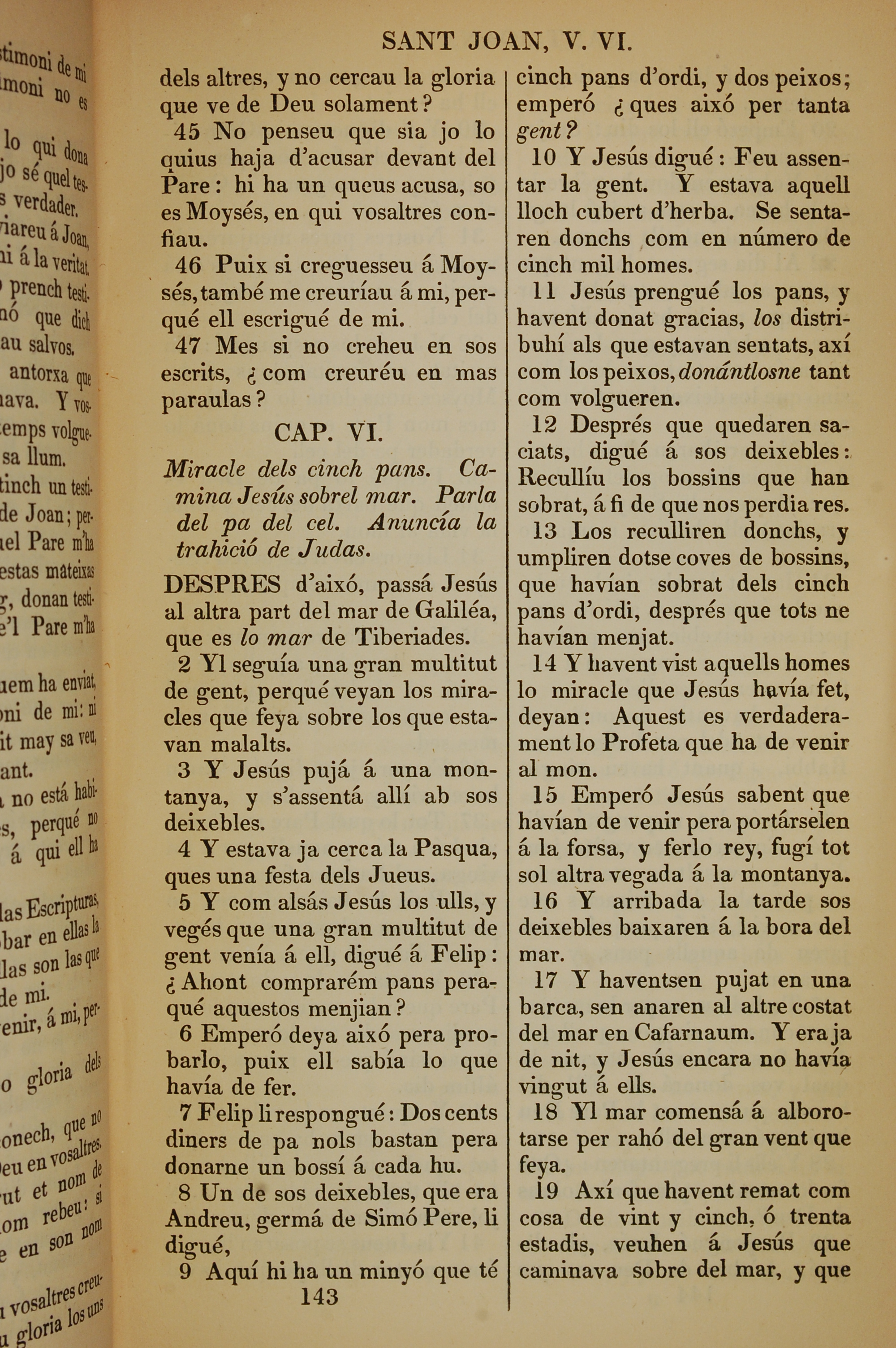 1835年加泰羅尼亞語新約全書 約翰福音 5 章 45 節到 6 章 19 節