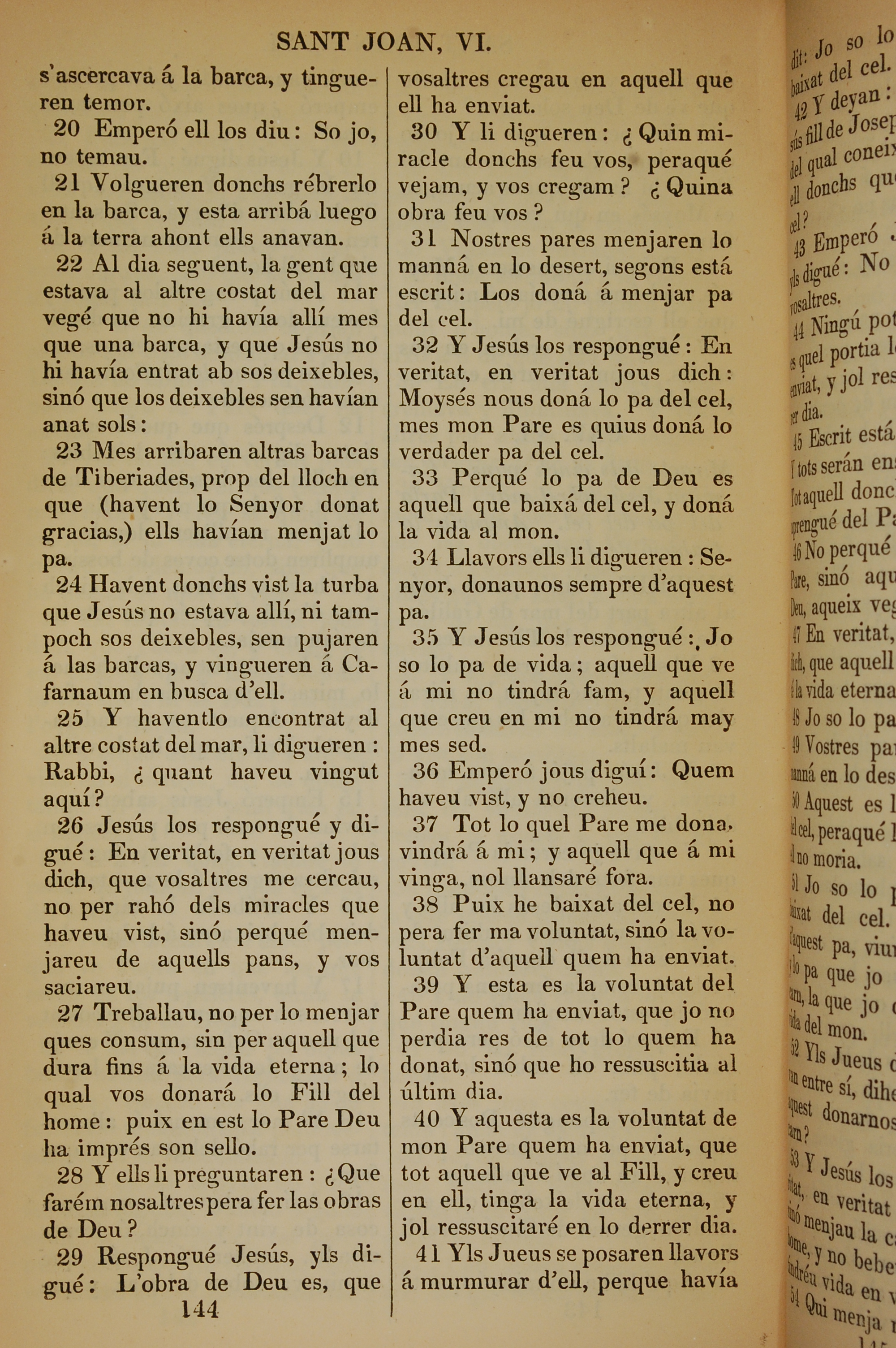 1835年加泰羅尼亞語新約全書 約翰福音 6 章 20 節到 6 章 41 節