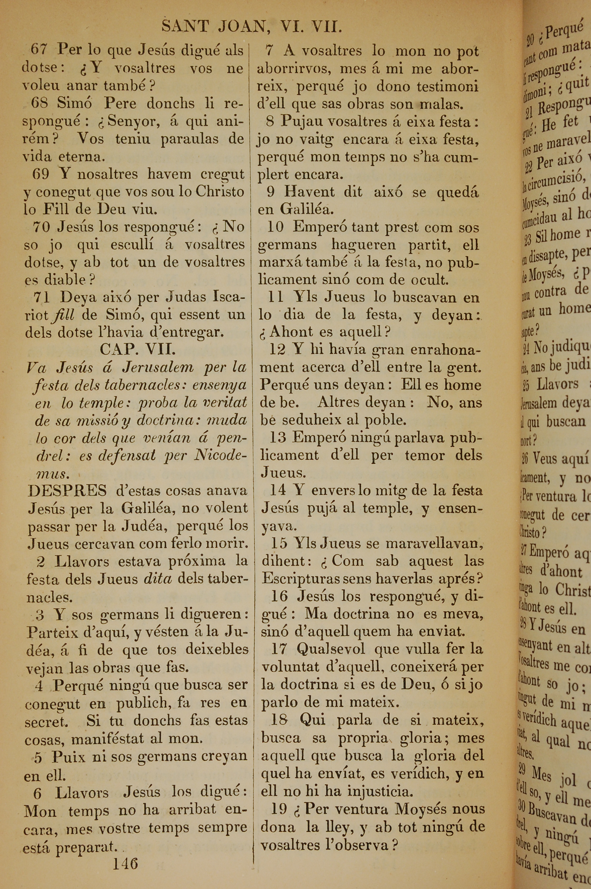 1835年加泰羅尼亞語新約全書 約翰福音 6 章 67 節到 7 章 19 節