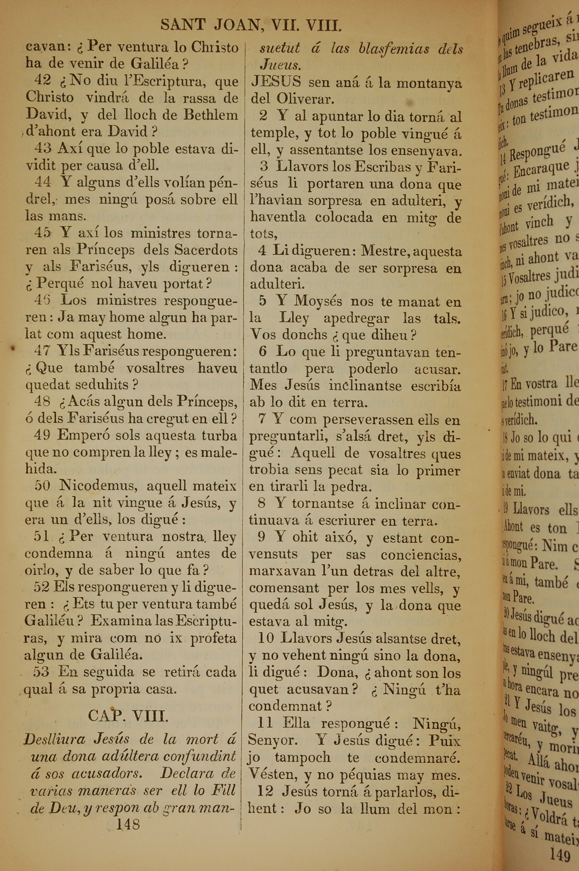 1835年加泰羅尼亞語新約全書 約翰福音 7 章 42 節到 8 章 12 節
