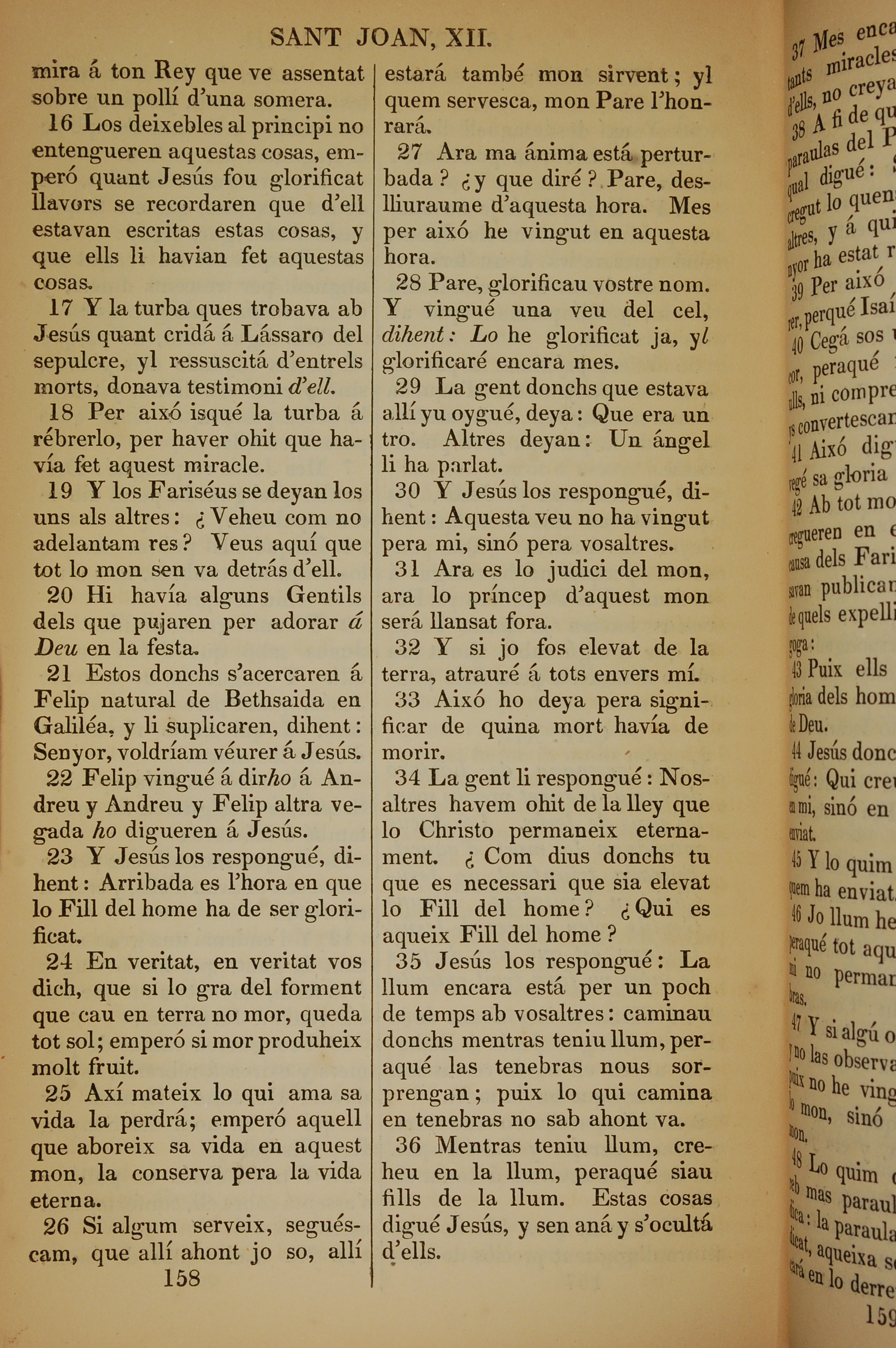 1835年加泰羅尼亞語新約全書 約翰福音 12 章 16 節到 12 章 36 節