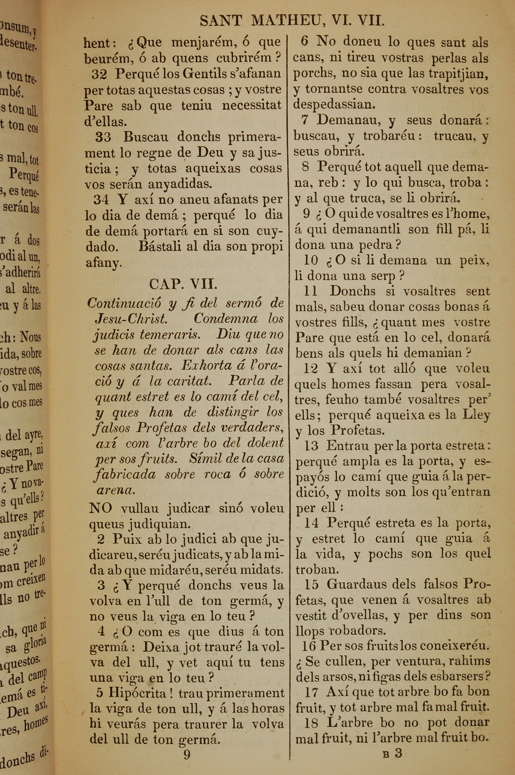 1835年加泰羅尼亞語新約全書 馬太福音 6 章 32 節到 7 章 18 節