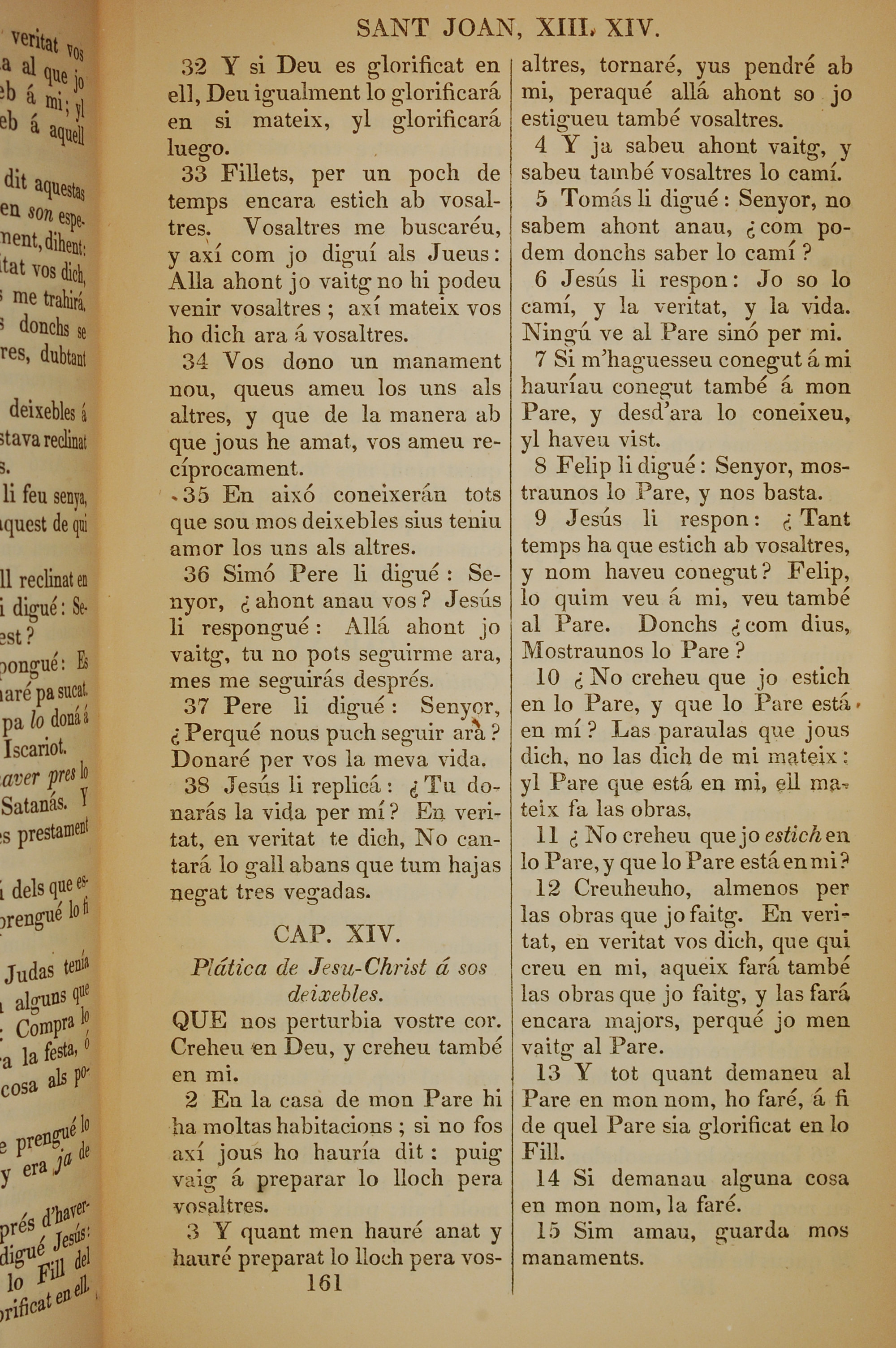 1835年加泰羅尼亞語新約全書 約翰福音 13 章 32 節到 14 章 15 節