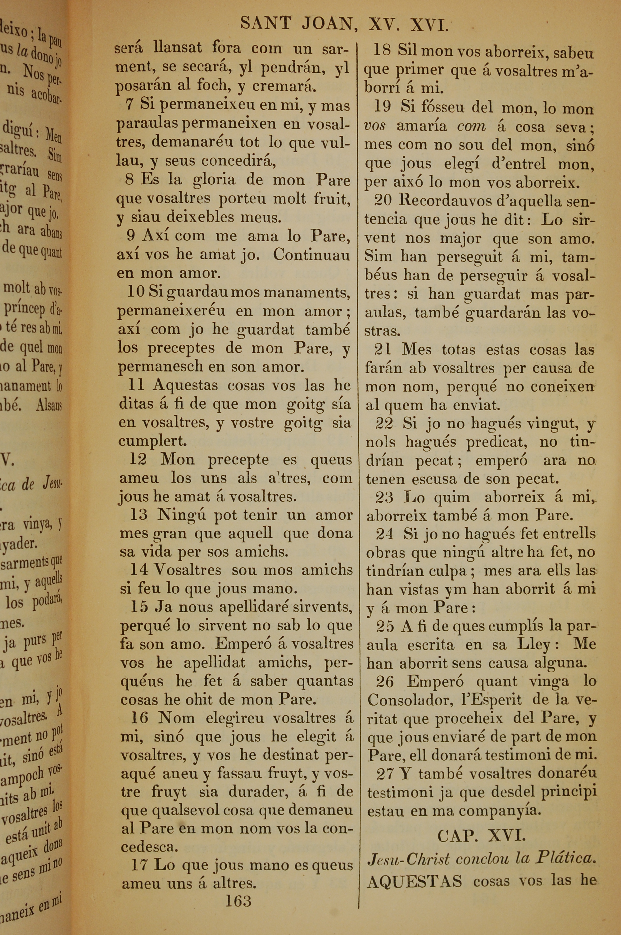 1835年加泰羅尼亞語新約全書 約翰福音 15 章 7 節到 16 章 1 節