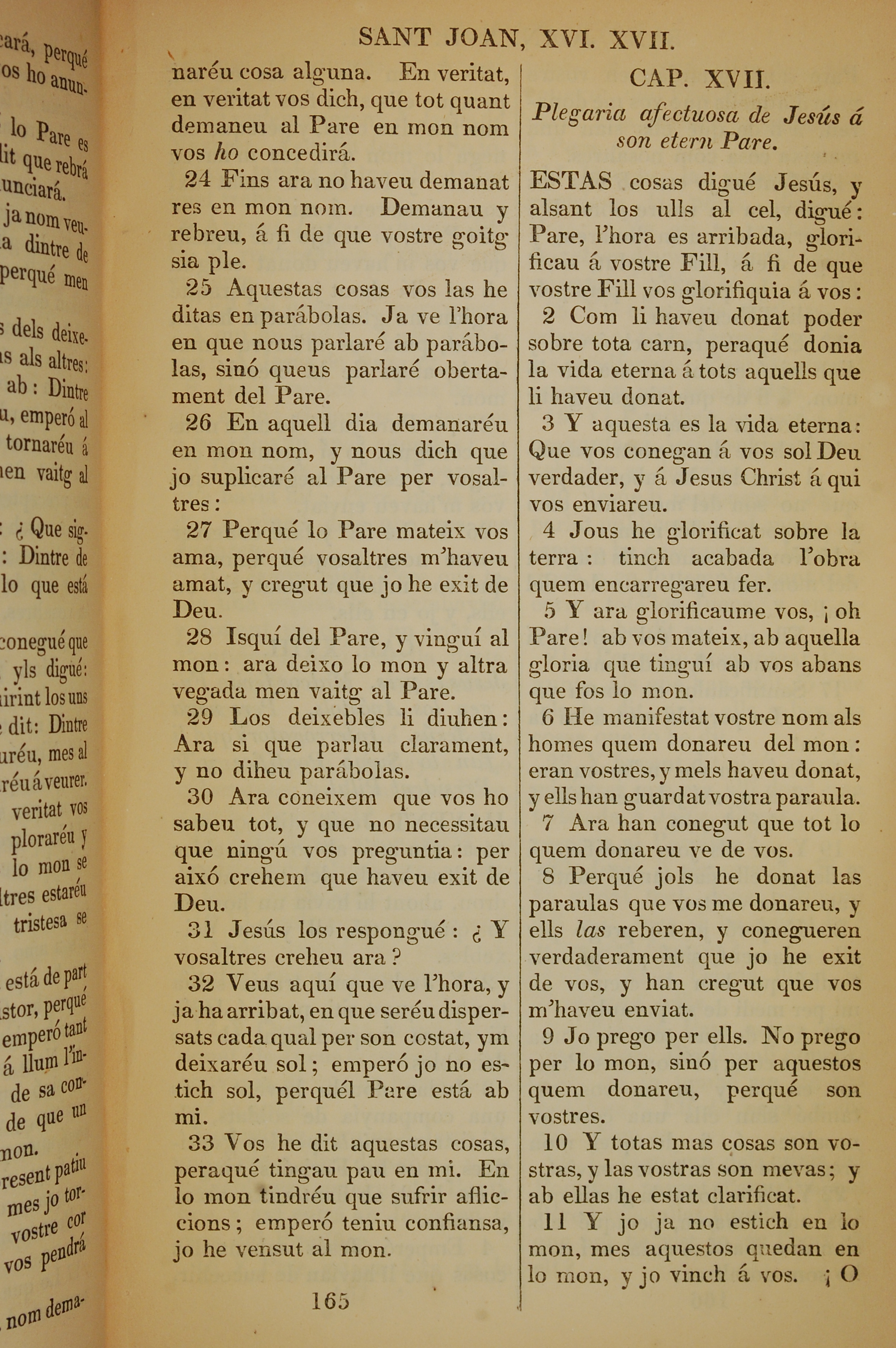 1835年加泰羅尼亞語新約全書 約翰福音 16 章 24 節到 17 章 11 節