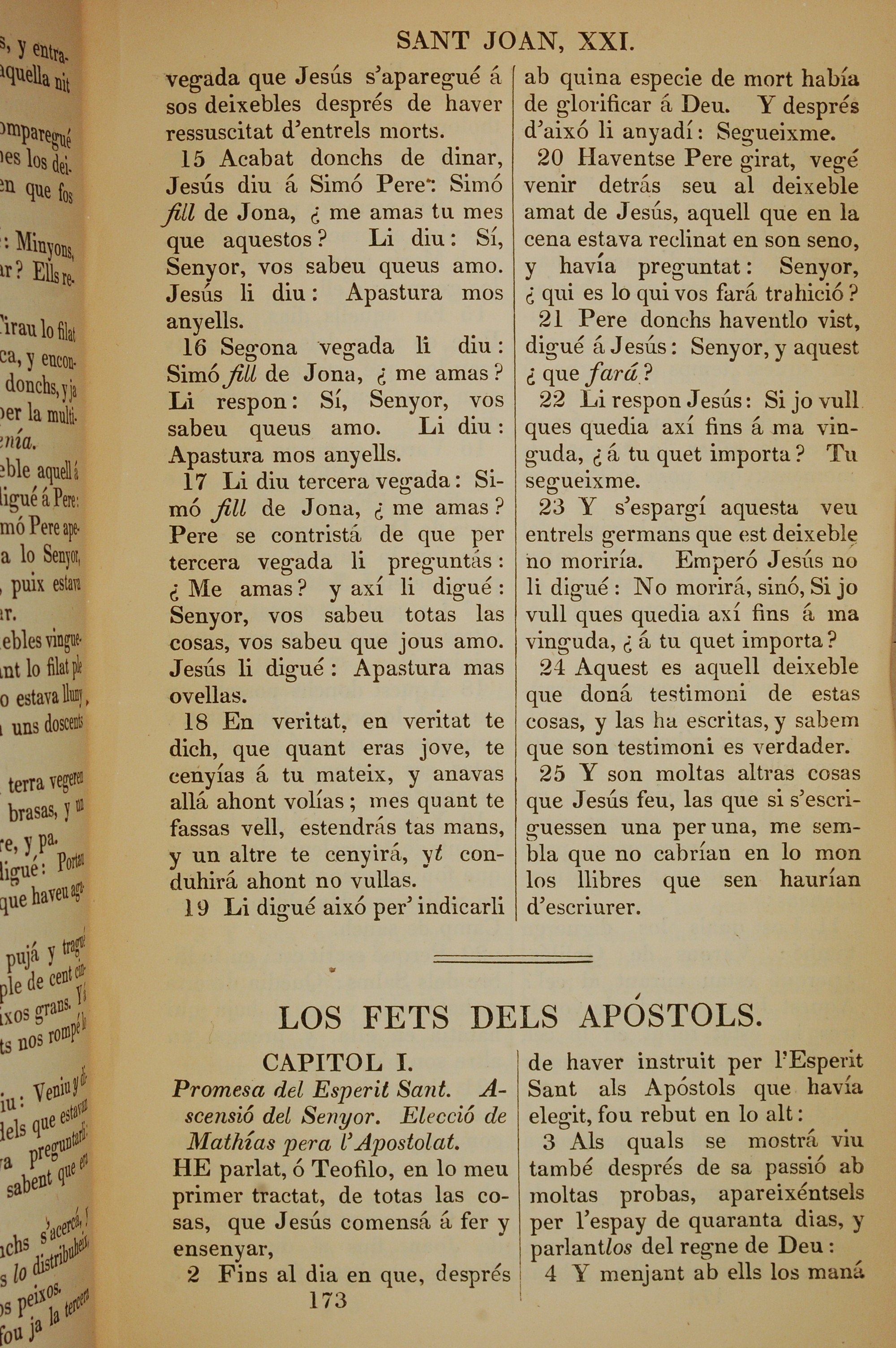 1835年加泰羅尼亞語新約全書 使徒行傳 1 章 1 節到 1 章 4 節
