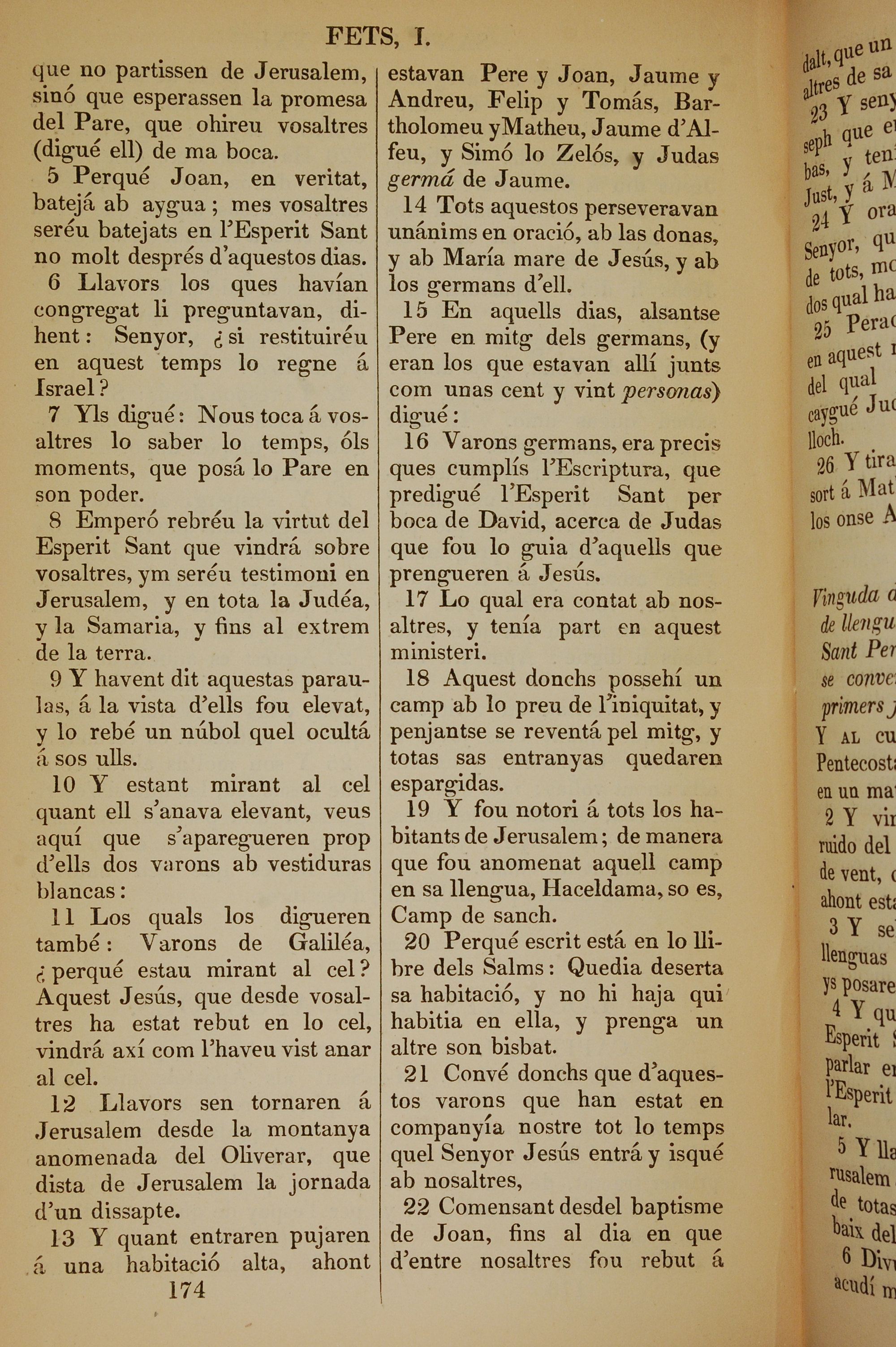 1835年加泰羅尼亞語新約全書 使徒行傳 1 章 5 節到 1 章 22 節