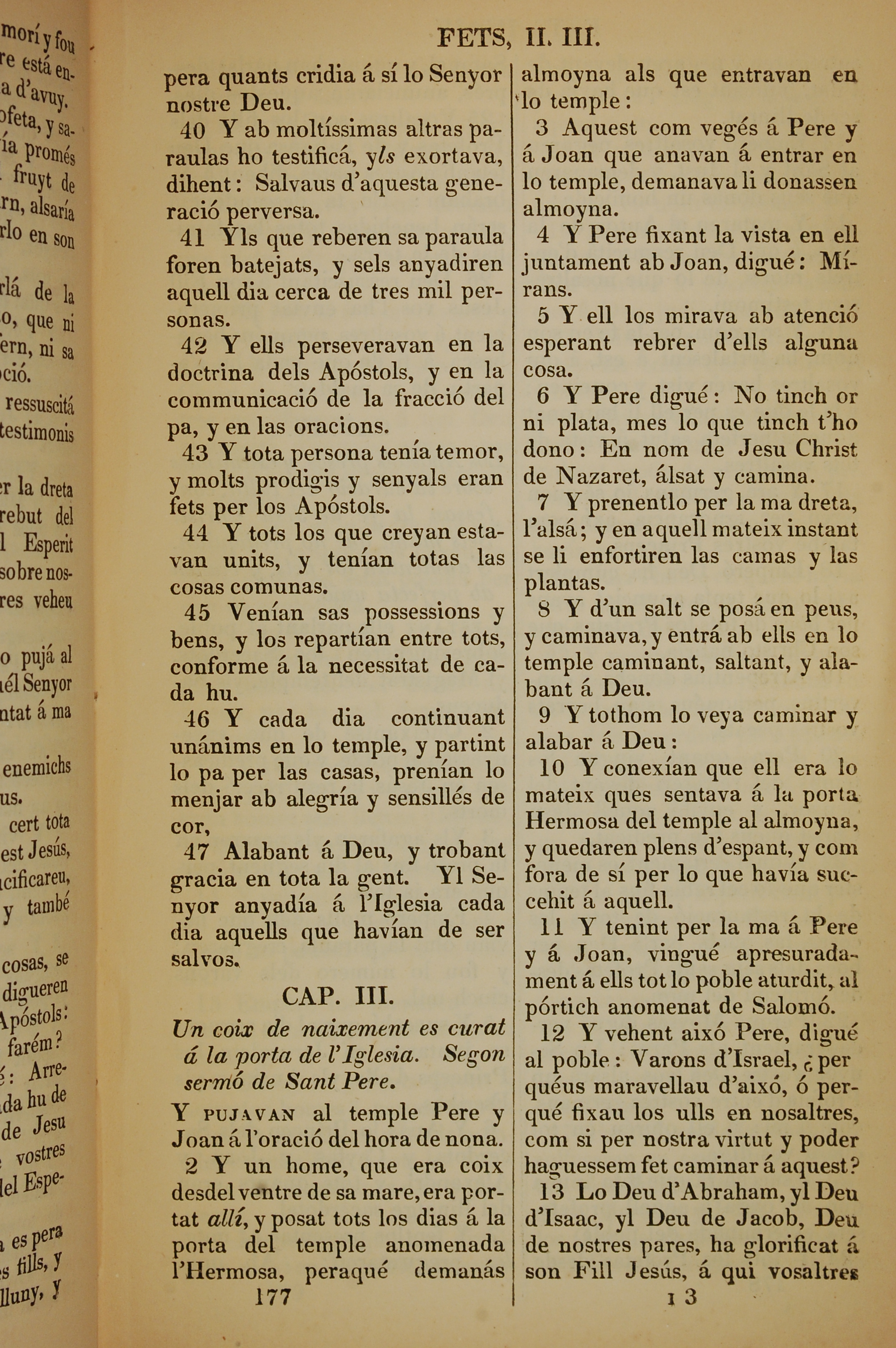 1835年加泰羅尼亞語新約全書 使徒行傳 2 章 40 節到 3 章 13 節