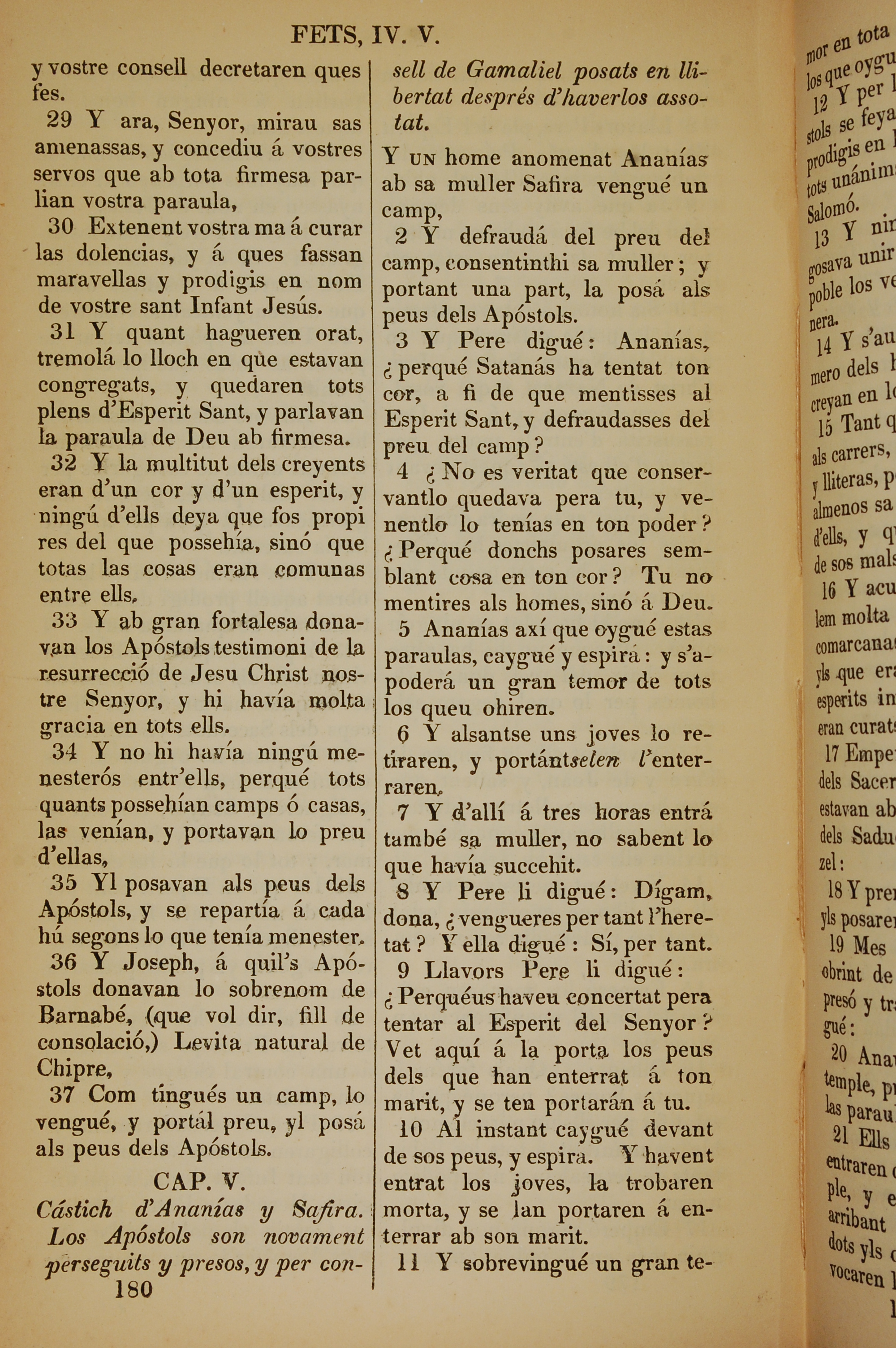 1835年加泰羅尼亞語新約全書 使徒行傳 4 章 29 節到 5 章 11 節