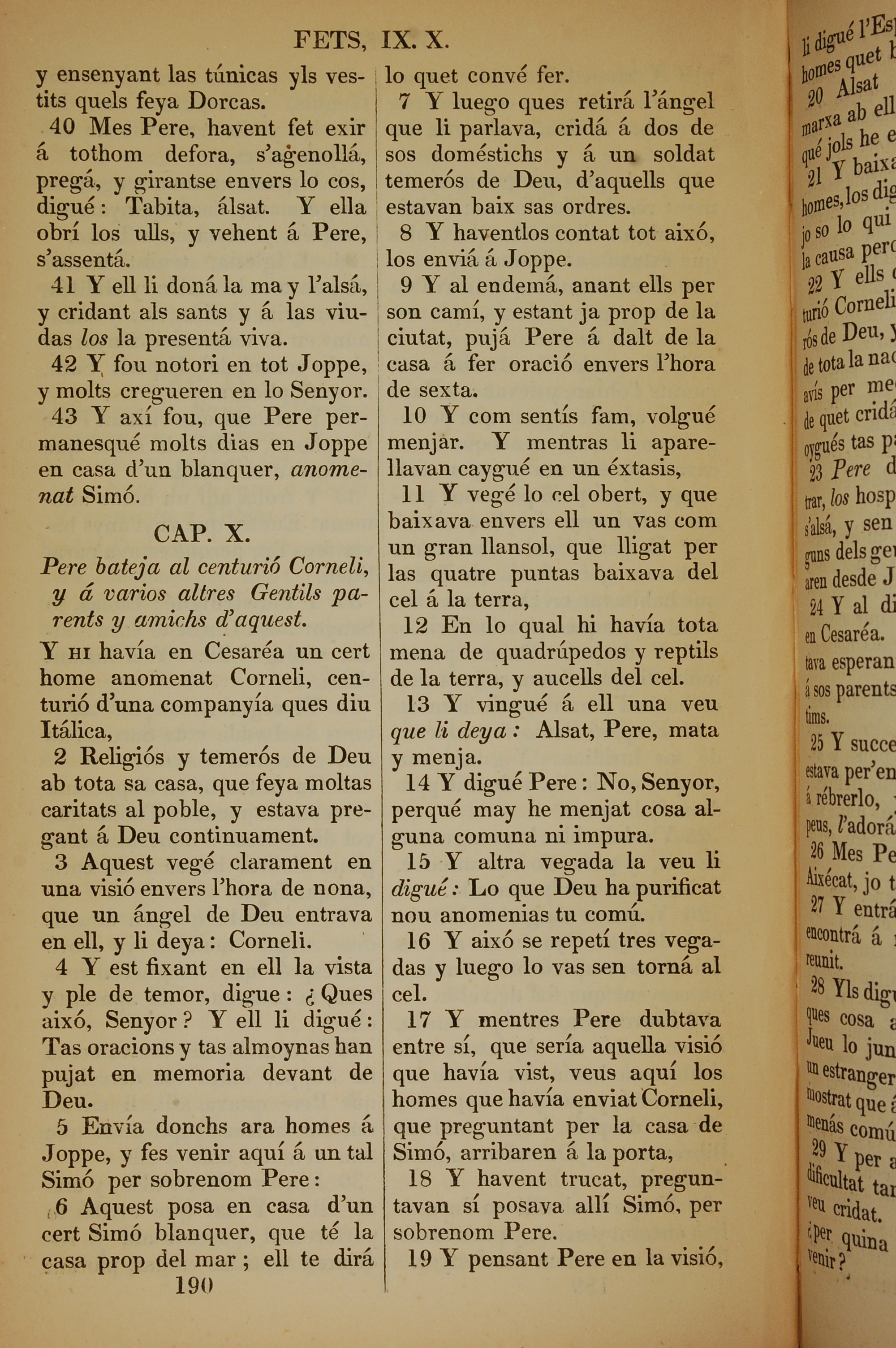 1835年加泰羅尼亞語新約全書 使徒行傳 9 章 40 節到 10 章 19 節