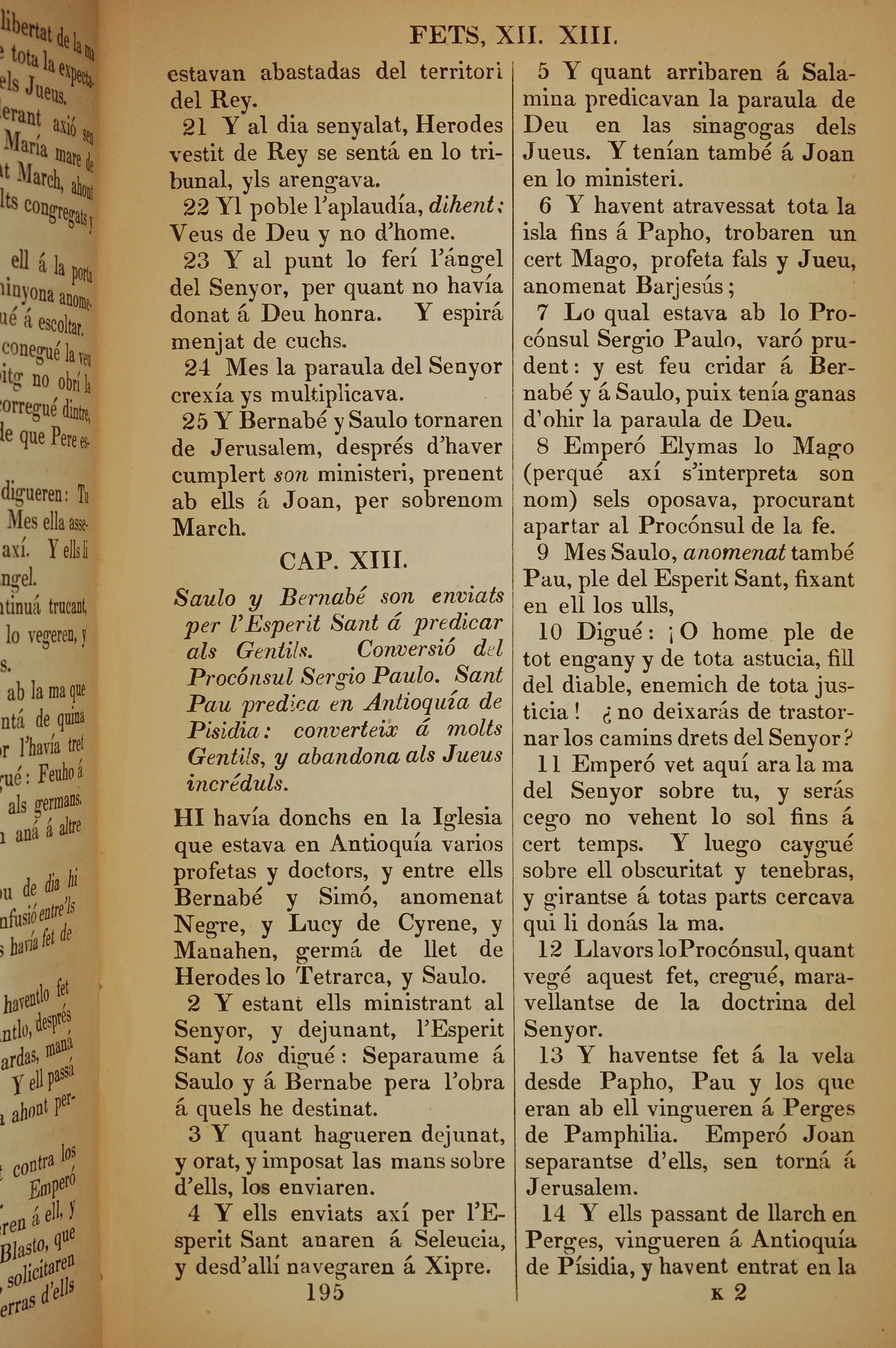 1835年加泰羅尼亞語新約全書 使徒行傳 12 章 21 節到 13 章 14 節