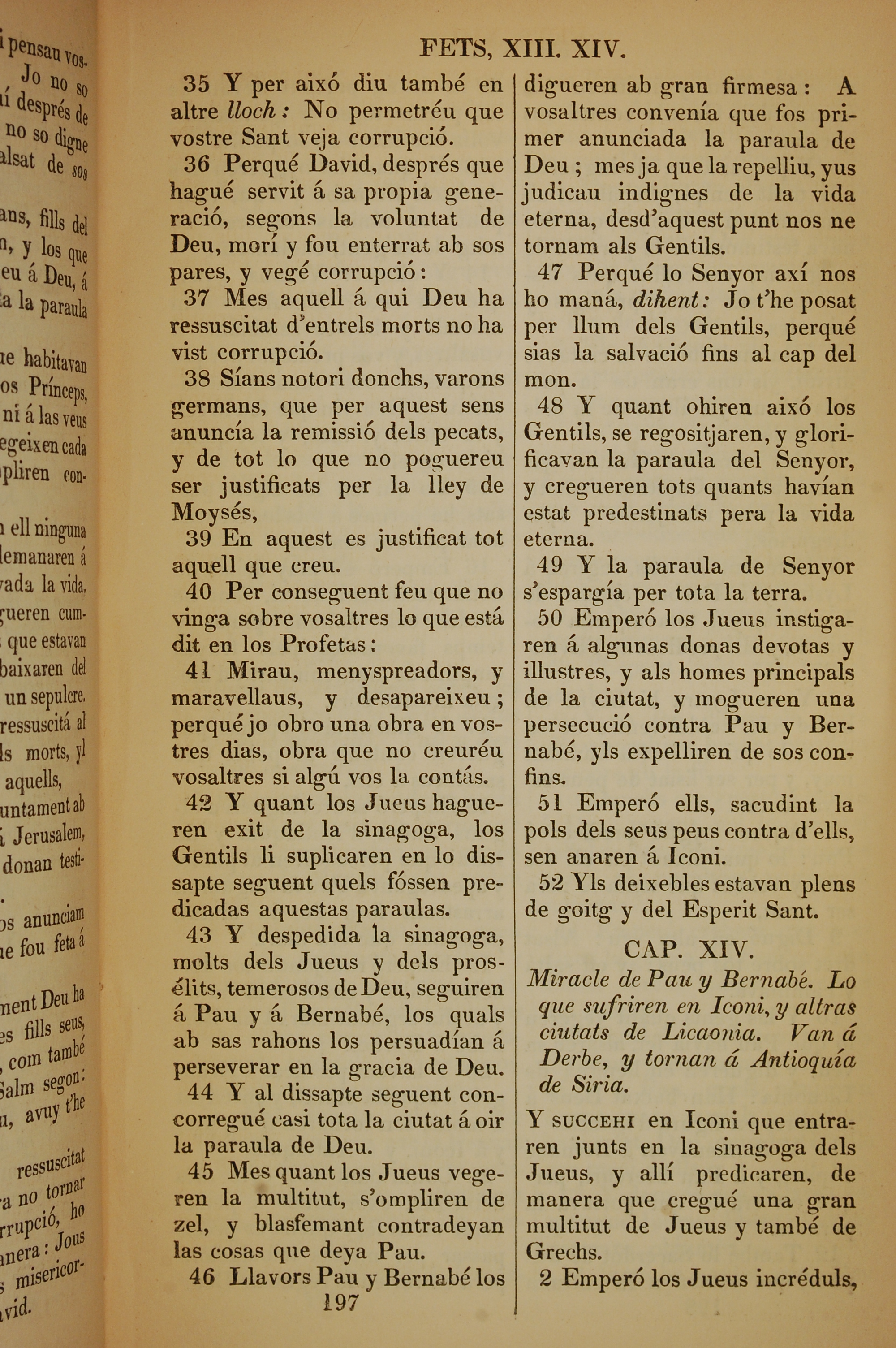 1835年加泰羅尼亞語新約全書 使徒行傳 13 章 35 節到 14 章 2 節