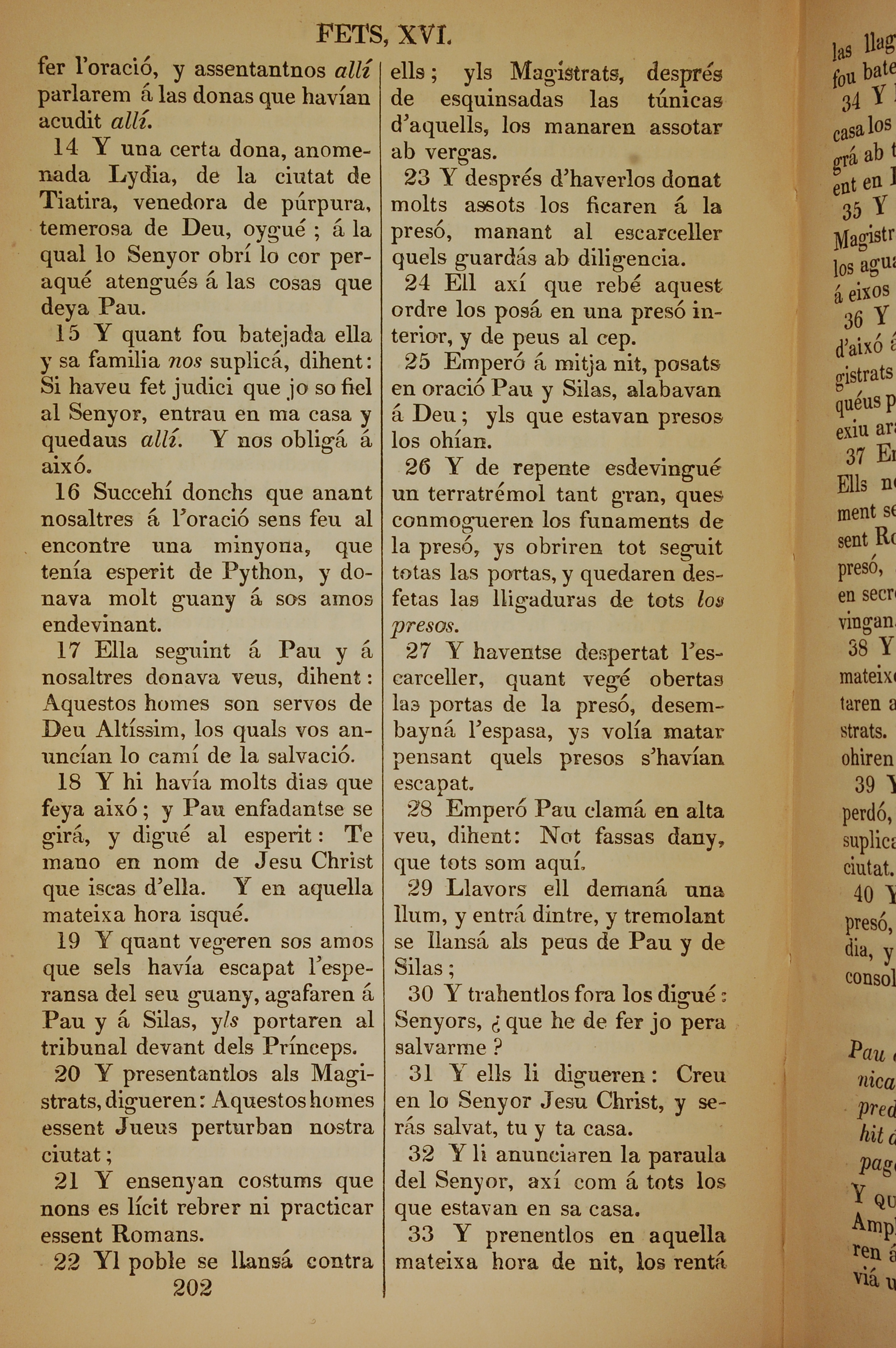 1835年加泰羅尼亞語新約全書 使徒行傳 16 章 14 節到 16 章 33 節