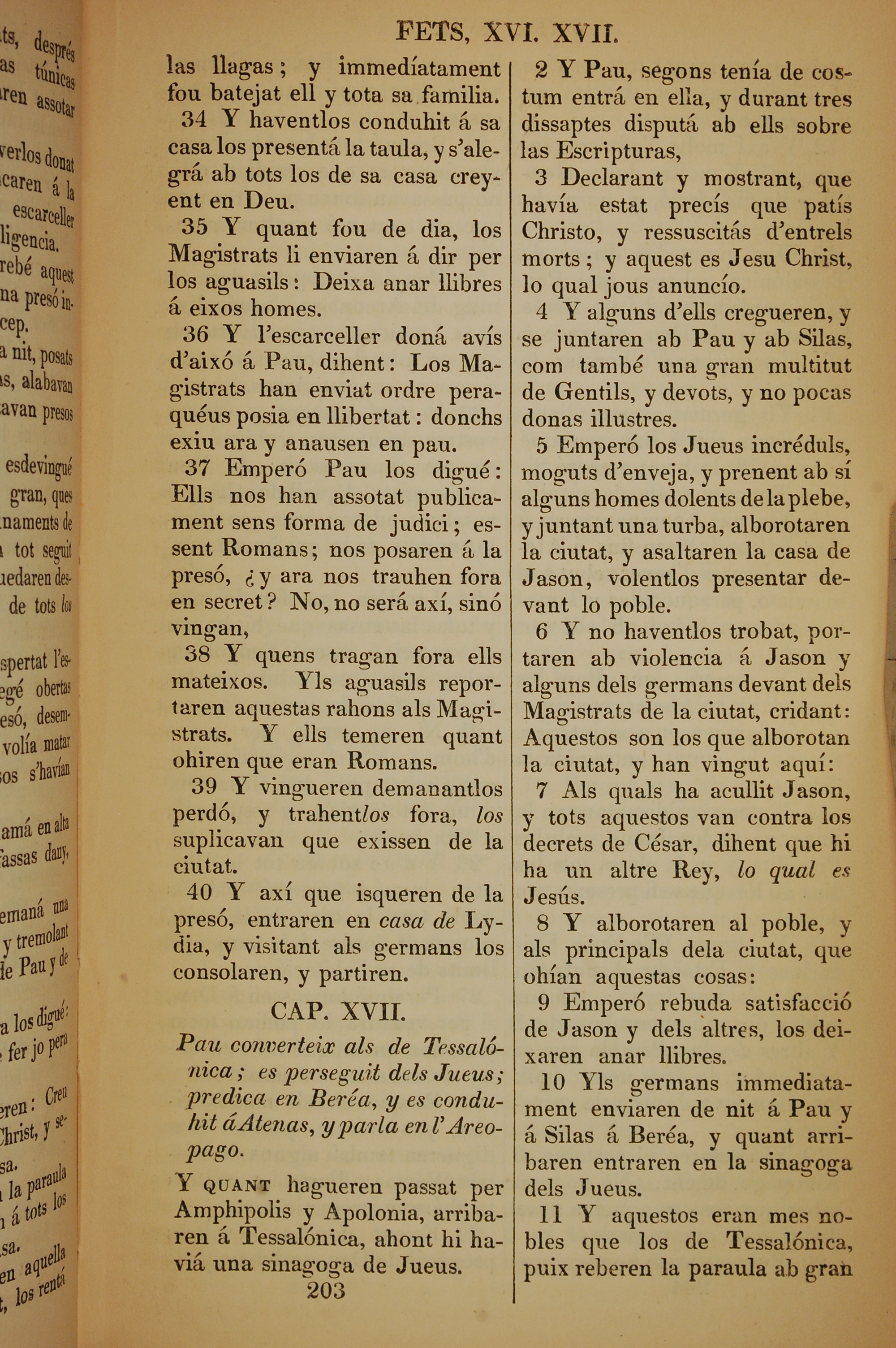 1835年加泰羅尼亞語新約全書 使徒行傳 16 章 34 節到 17 章 11 節