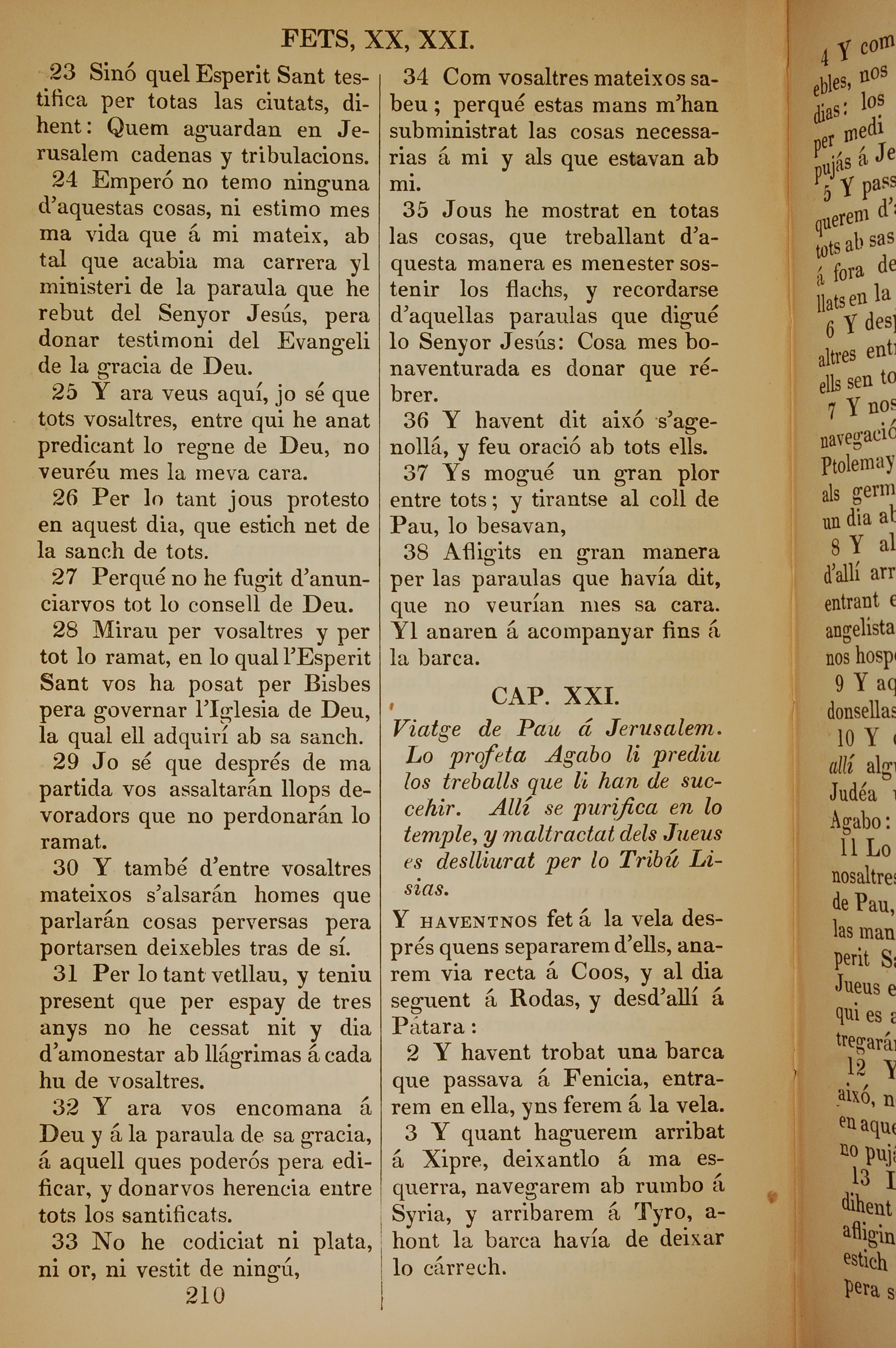 1835年加泰羅尼亞語新約全書 使徒行傳 20 章 23 節到 21 章 3 節