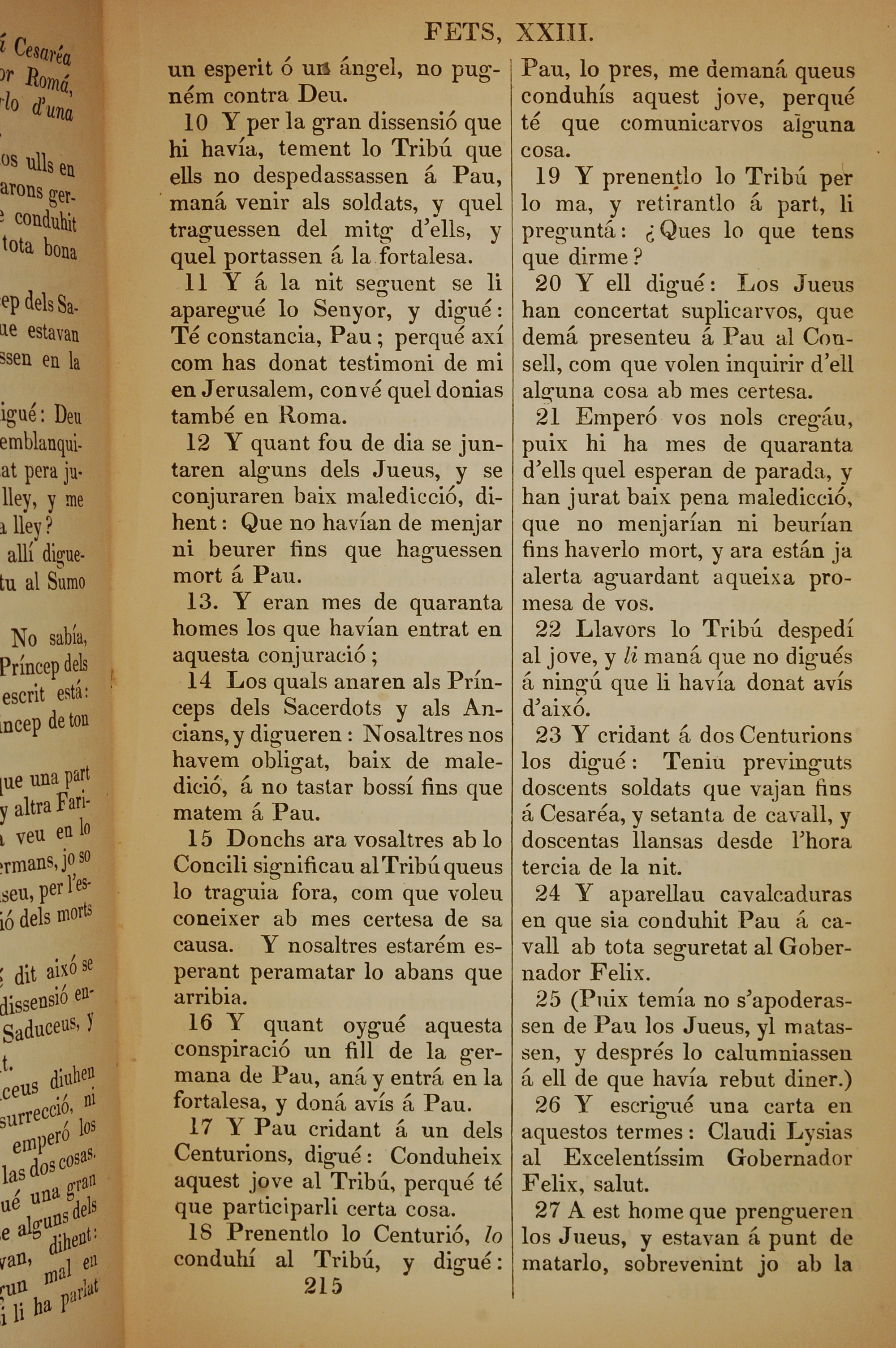 1835年加泰羅尼亞語新約全書 使徒行傳 23 章 10 節到 23 章 27 節