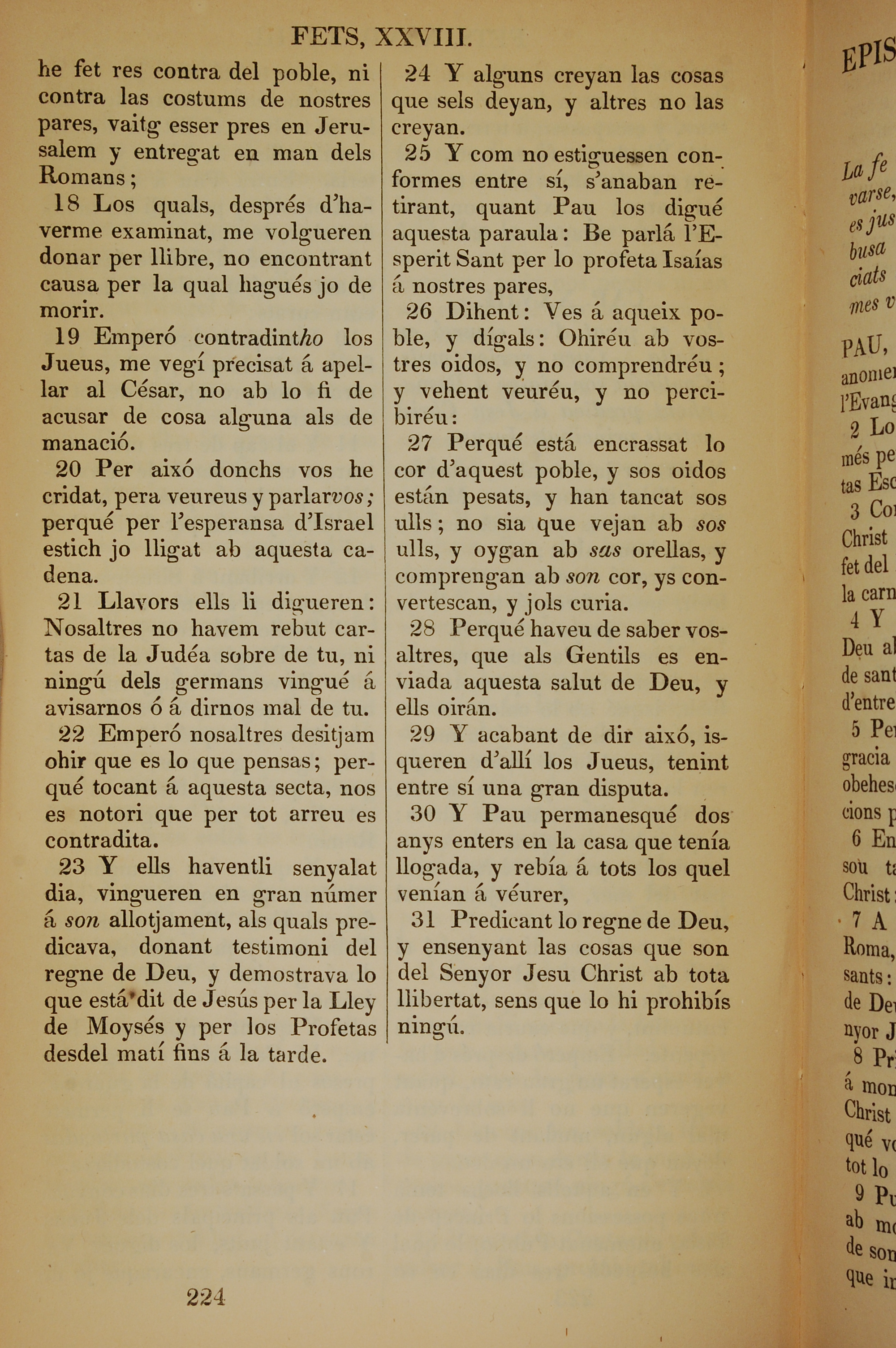 1835年加泰羅尼亞語新約全書 使徒行傳 28 章 18 節到 28 章 31 節