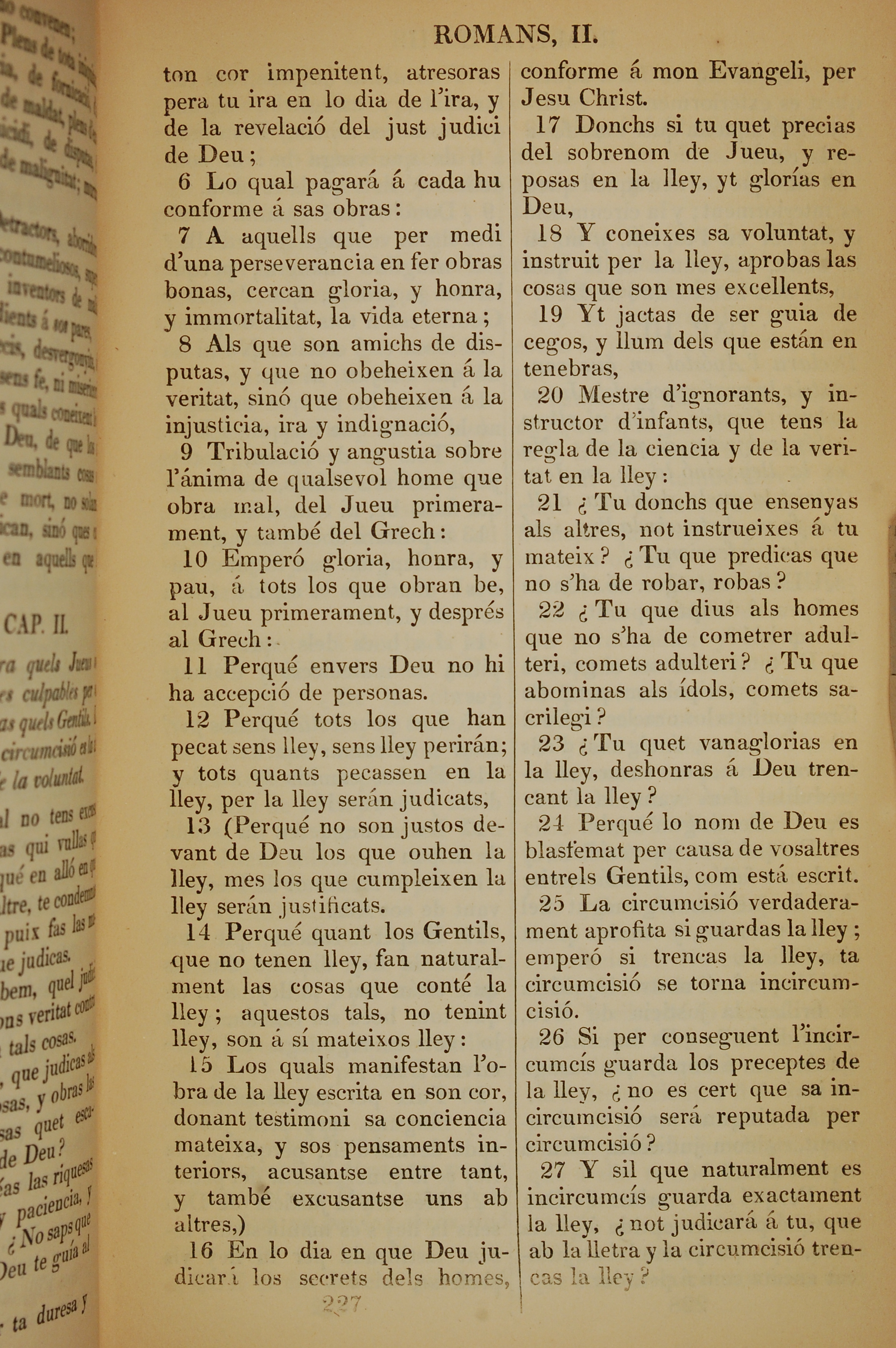 1835年加泰羅尼亞語新約全書 羅馬書 2 章 6 節到 2 章 27 節
