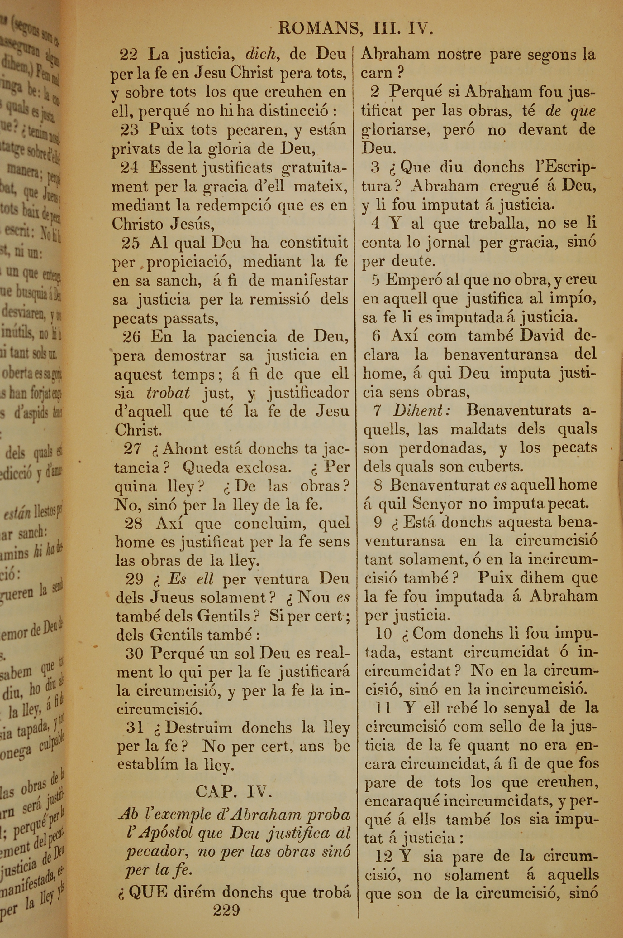 1835年加泰羅尼亞語新約全書 羅馬書 3 章 22 節到 4 章 12 節