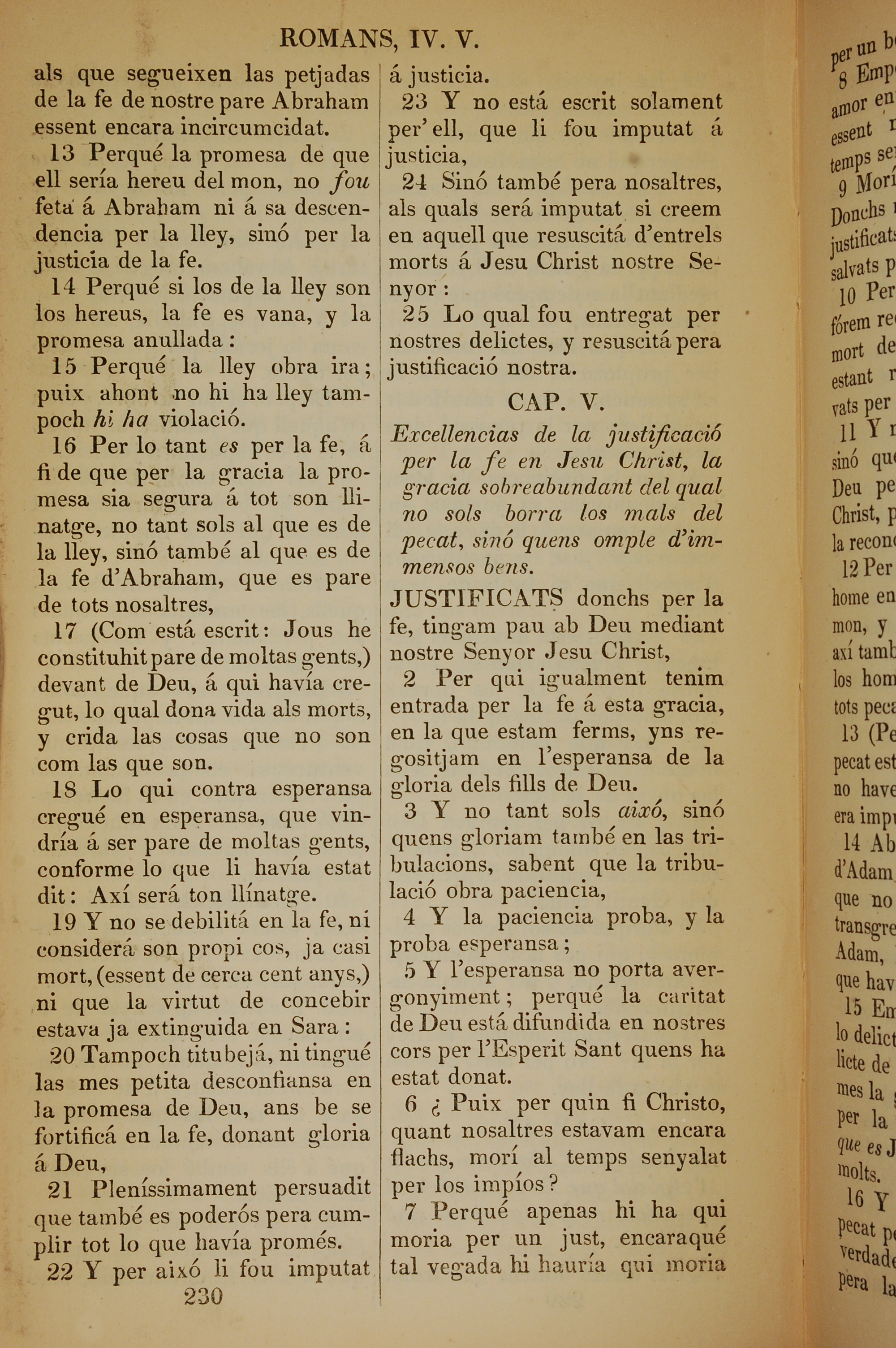 1835年加泰羅尼亞語新約全書 羅馬書 4 章 13 節到 5 章 7 節