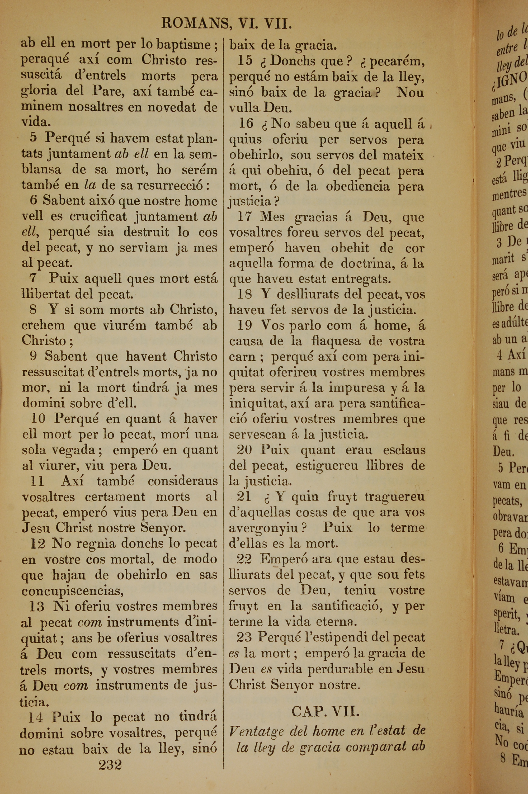 1835年加泰羅尼亞語新約全書 羅馬書 6 章 5 節到 6 章 23 節