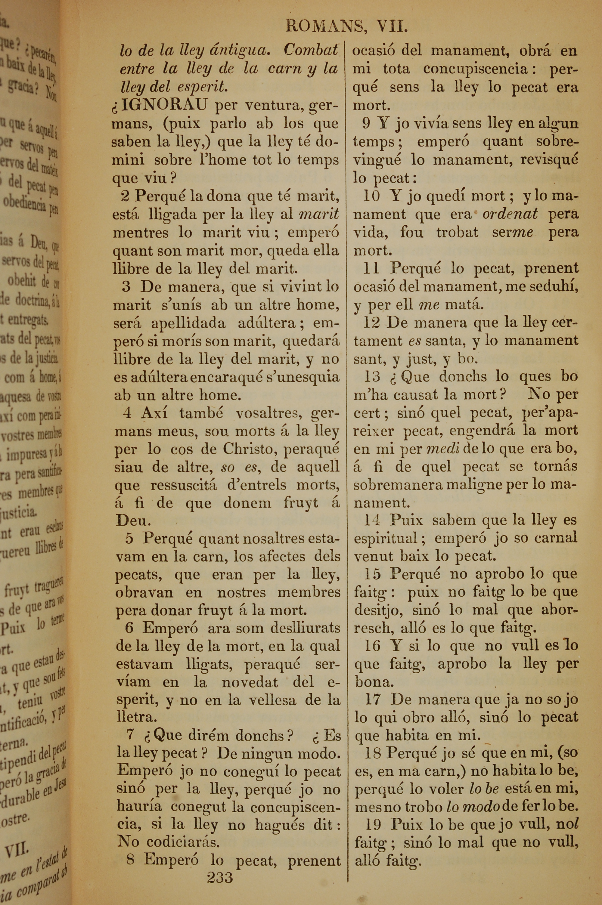 1835年加泰羅尼亞語新約全書 羅馬書 7 章 1 節到 7 章 19 節