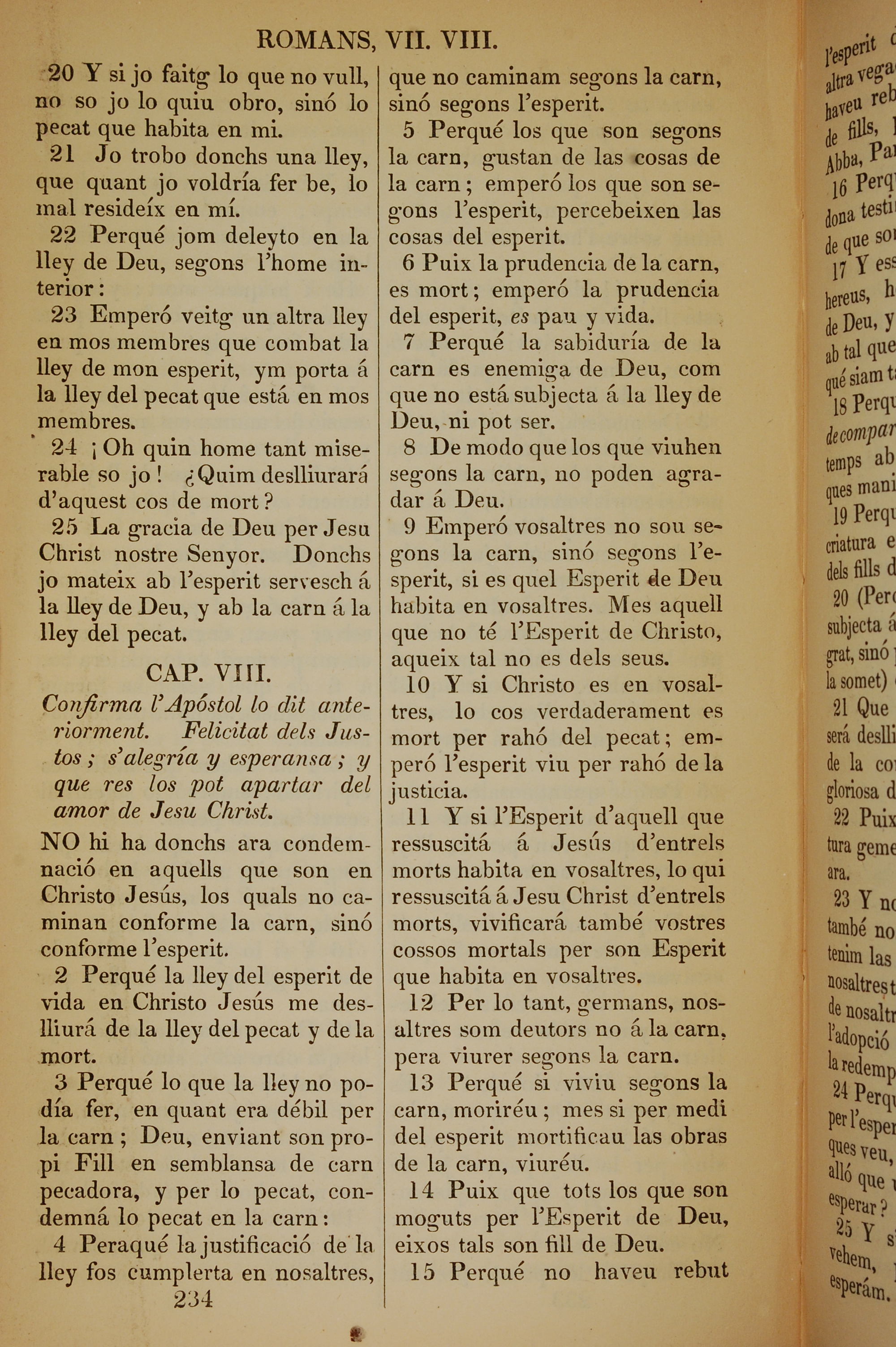 1835年加泰羅尼亞語新約全書 羅馬書 7 章 20 節到 8 章 15 節