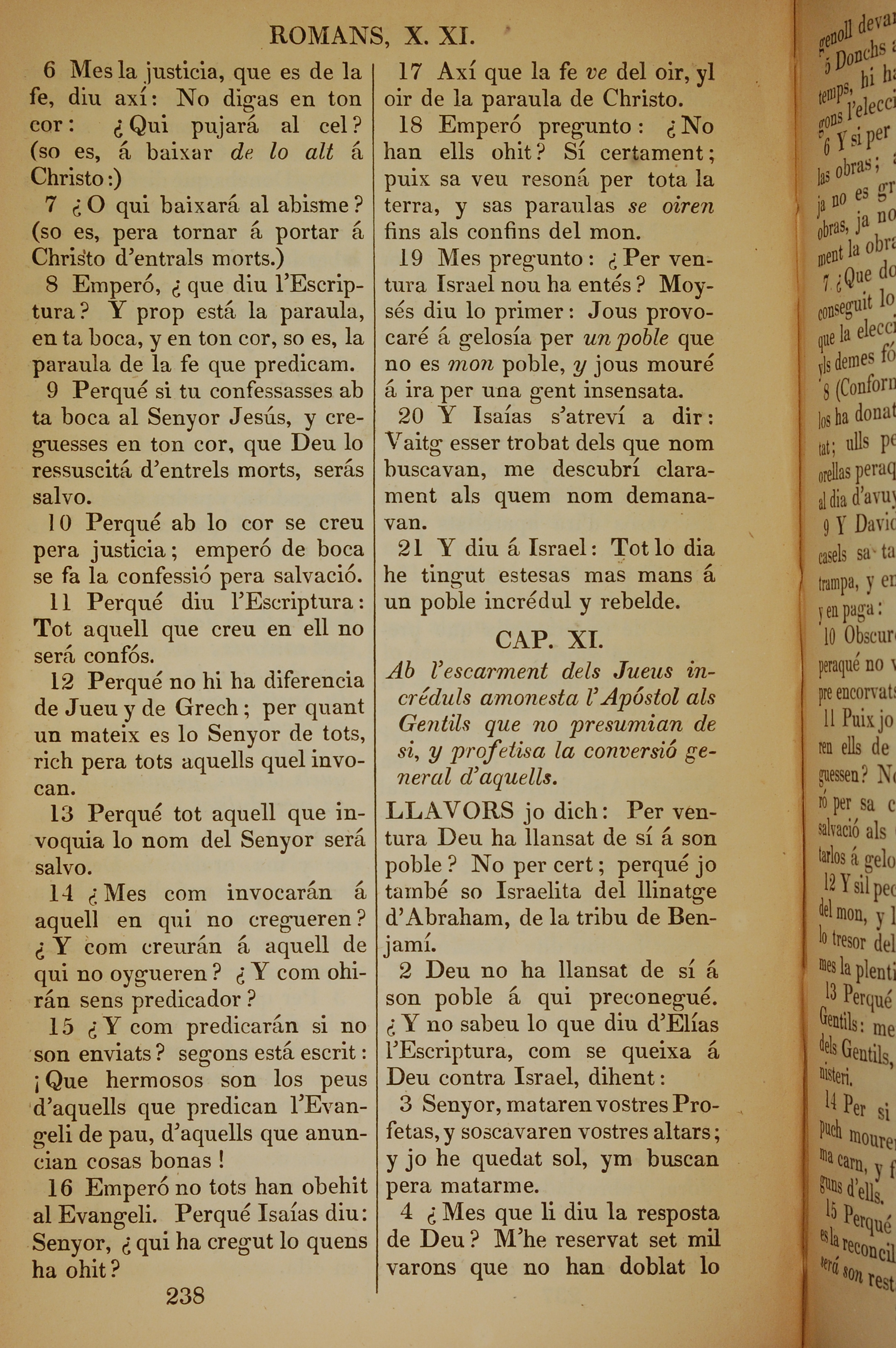 1835年加泰羅尼亞語新約全書 羅馬書 10 章 6 節到 11 章 4 節