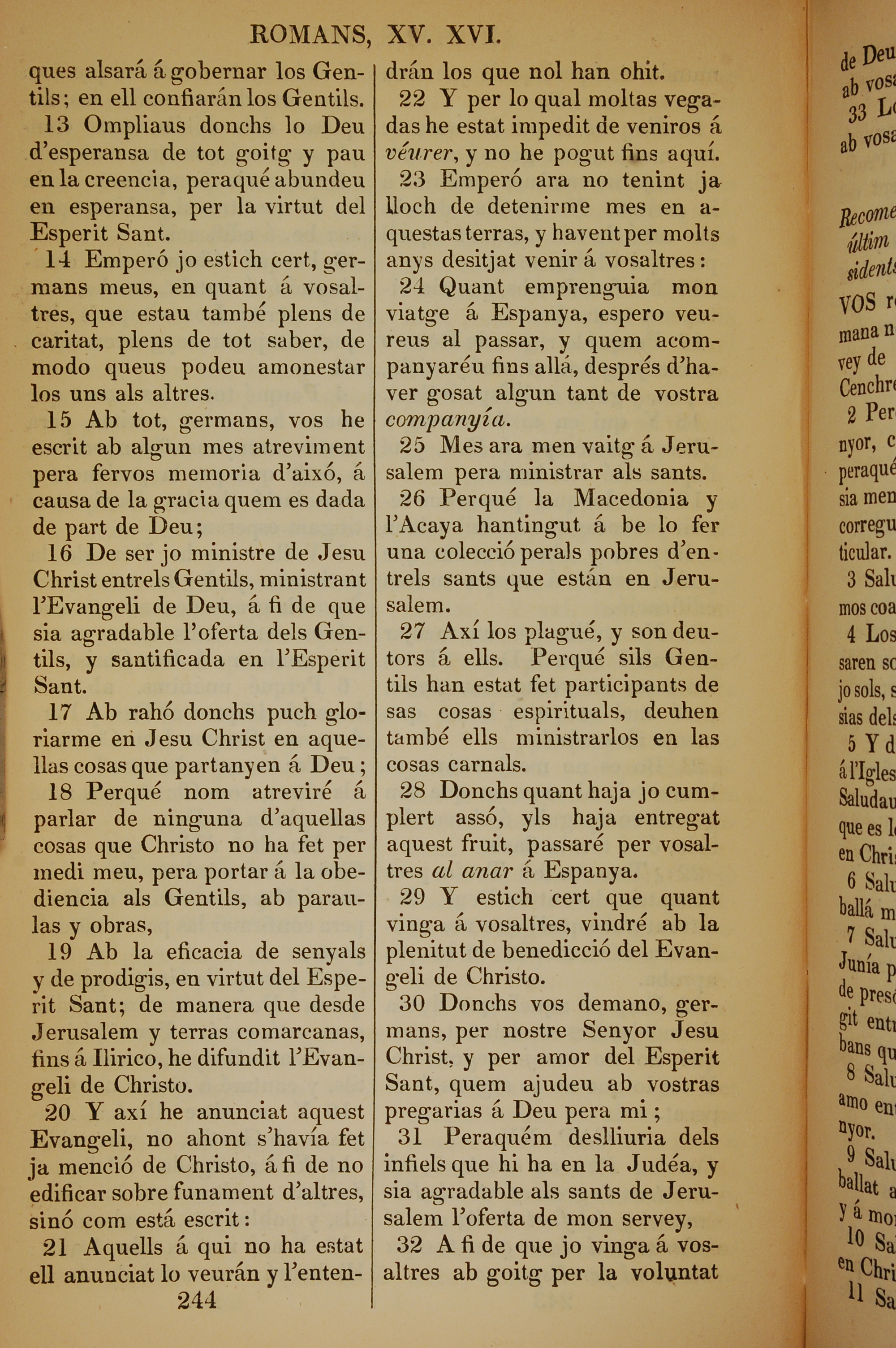1835年加泰羅尼亞語新約全書 羅馬書 15 章 13 節到 15 章 32 節