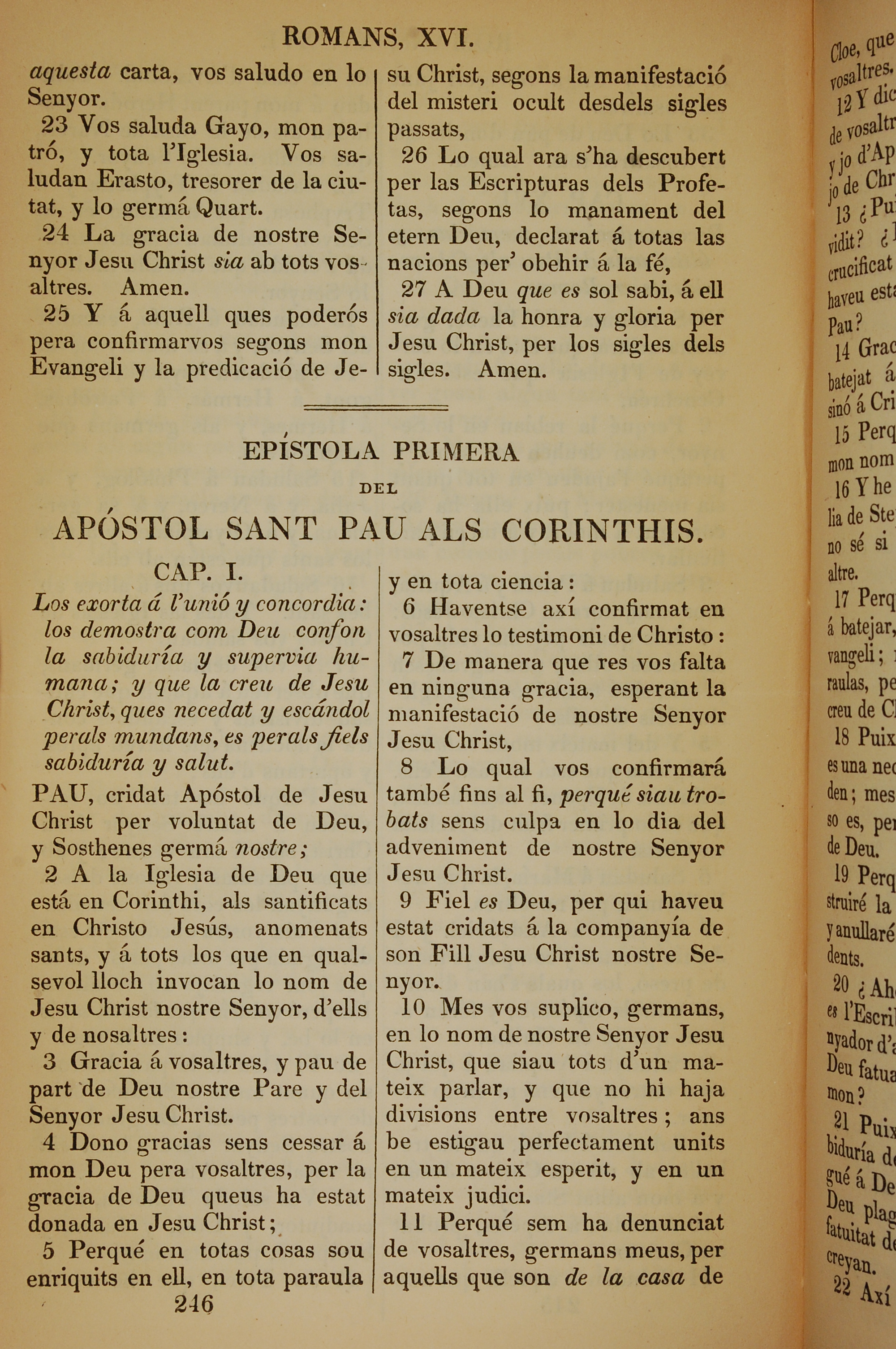 1835年加泰羅尼亞語新約全書 哥林多前書 1 章 1 節到 1 章 11 節