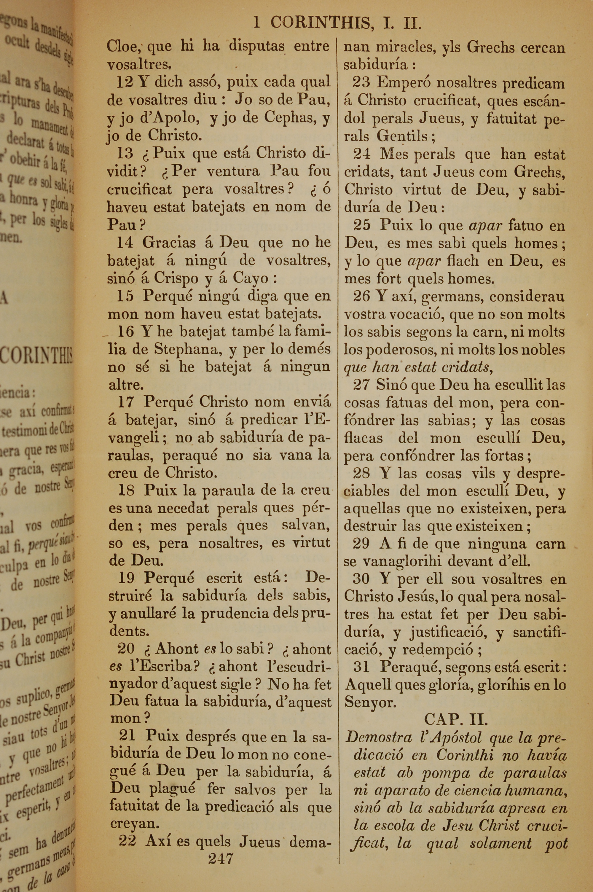 1835年加泰羅尼亞語新約全書 哥林多前書 1 章 12 節到 1 章 31 節