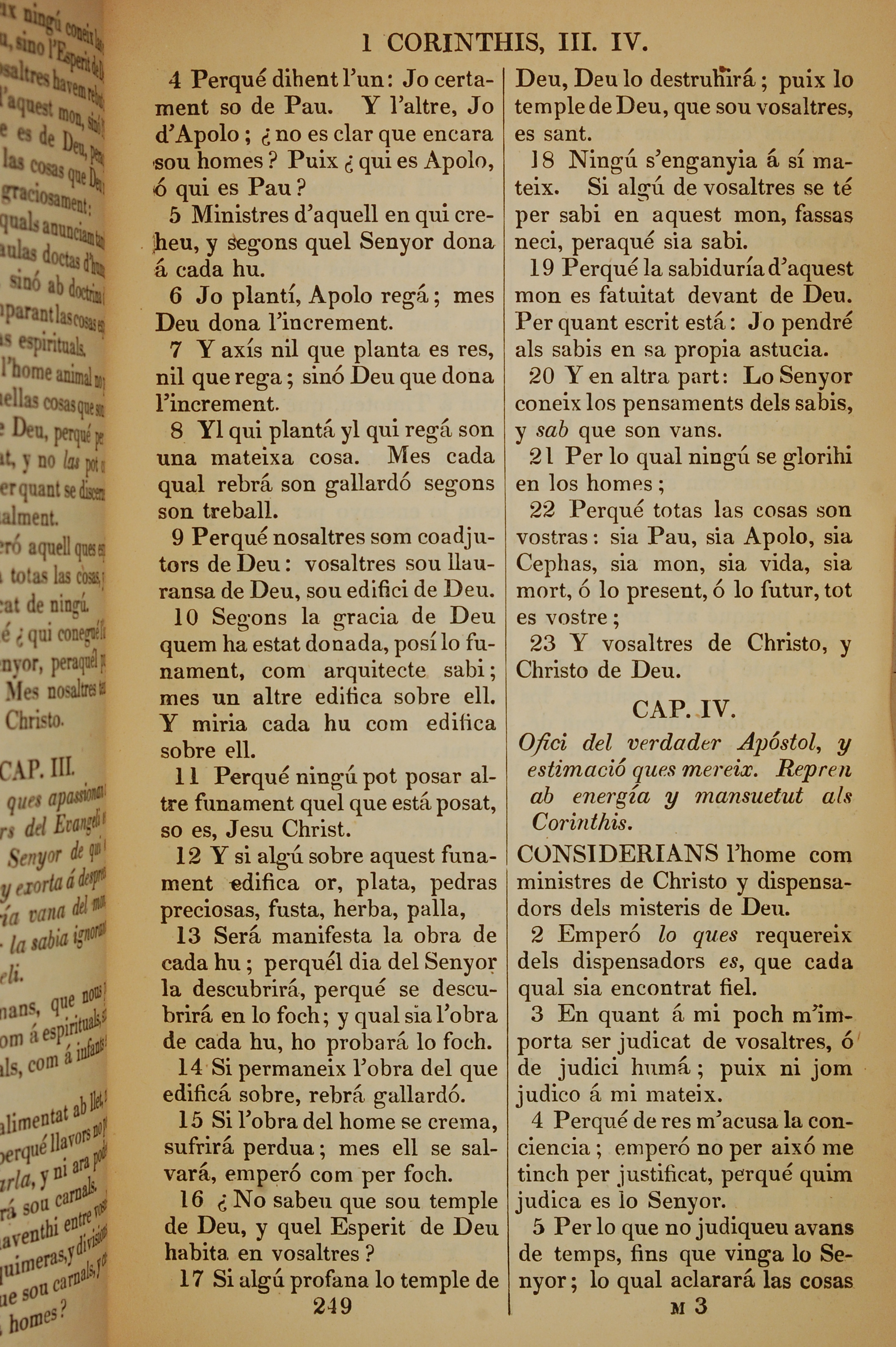 1835年加泰羅尼亞語新約全書 哥林多前書 3 章 4 節到 4 章 5 節