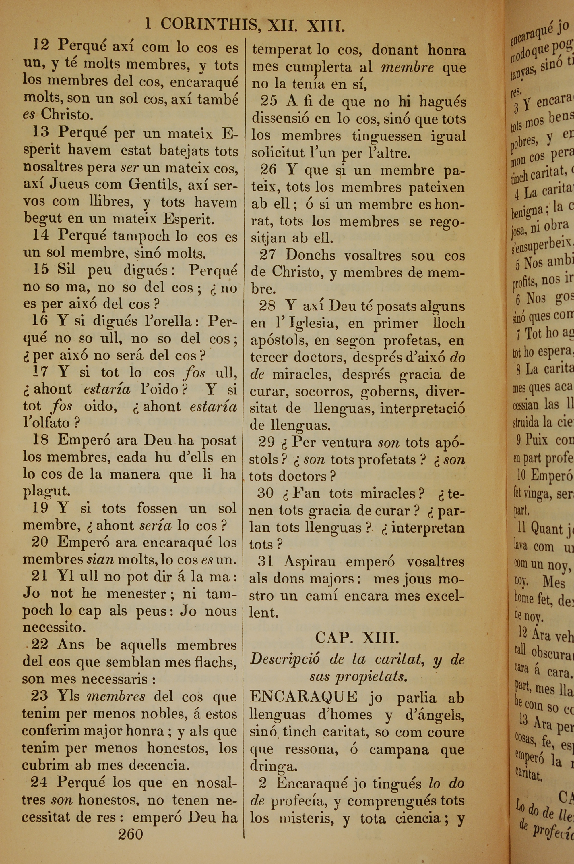 1835年加泰羅尼亞語新約全書 哥林多前書 12 章 12 節到 13 章 2 節