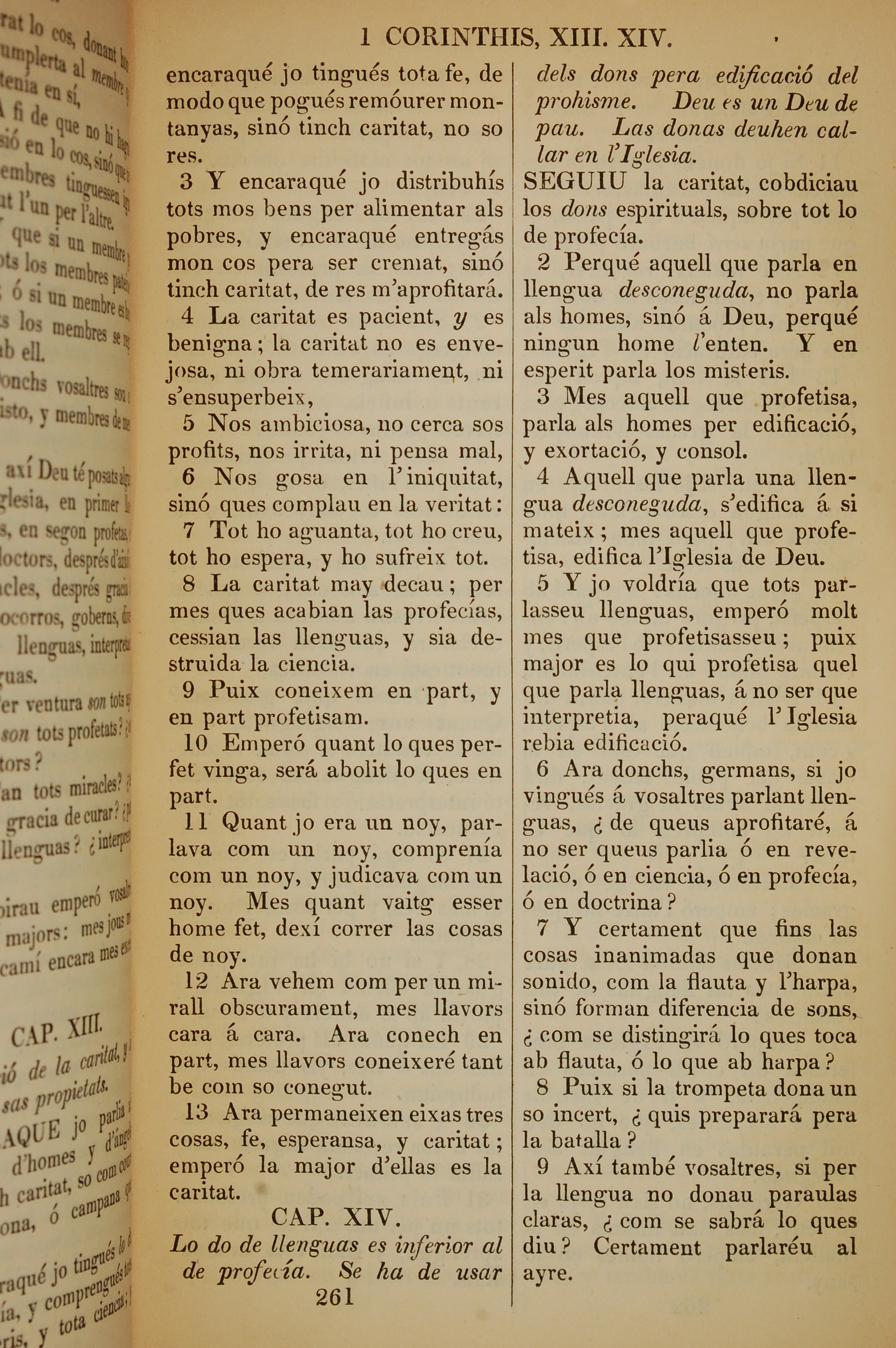 1835年加泰羅尼亞語新約全書 哥林多前書 13 章 3 節到 14 章 9 節