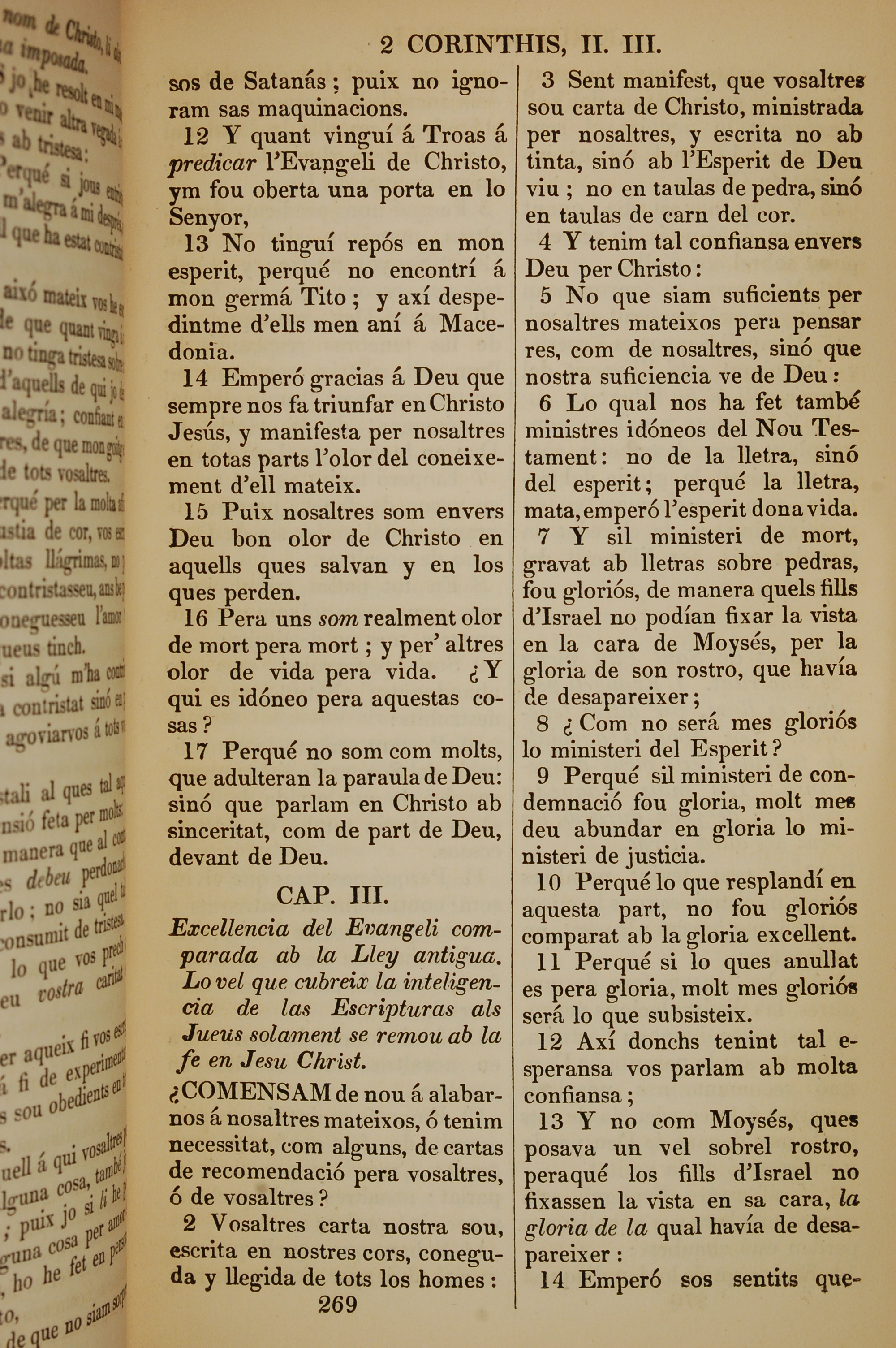 1835年加泰羅尼亞語新約全書 哥林多後書 2 章 12 節到 3 章 14 節
