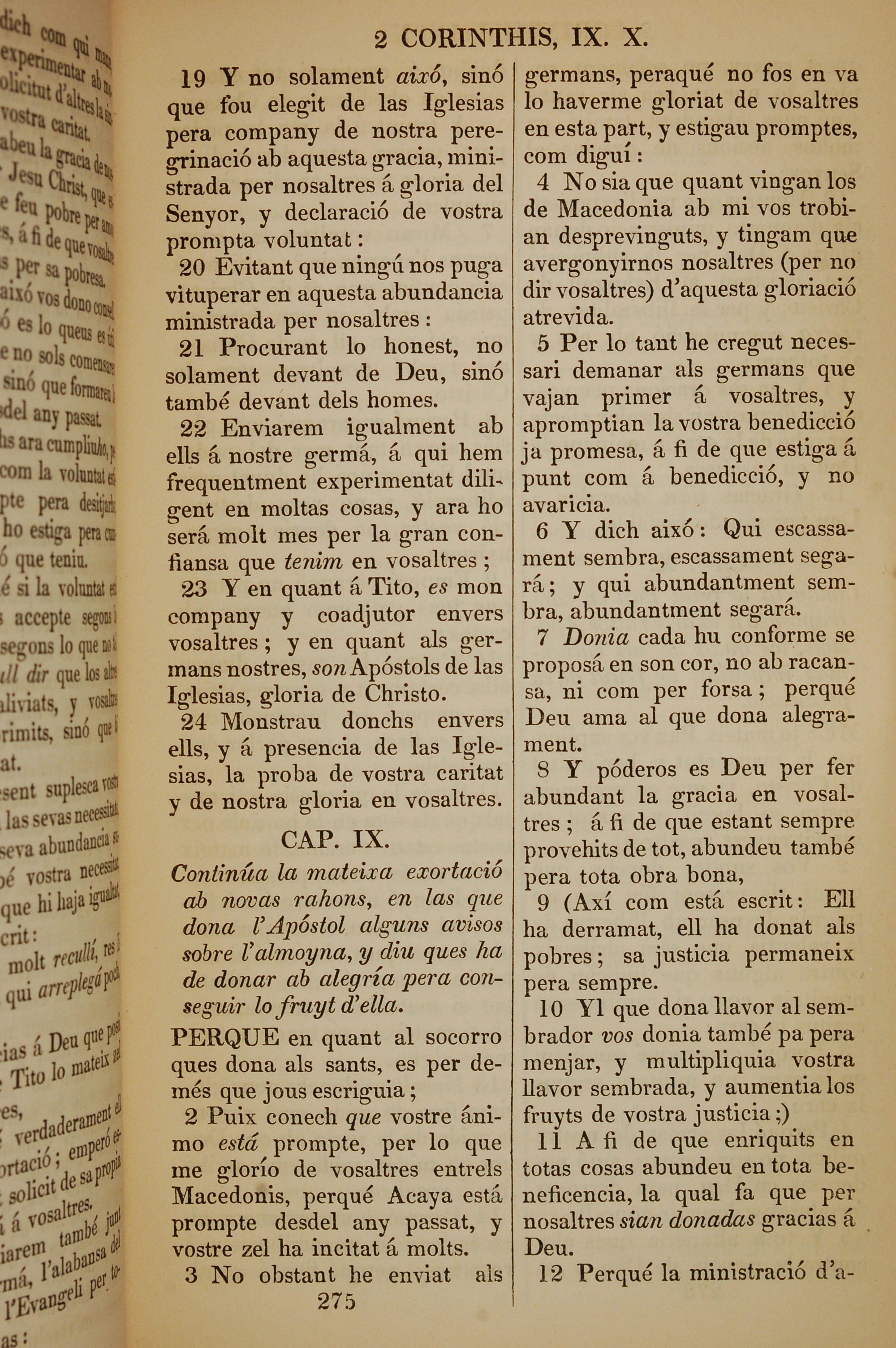 1835年加泰羅尼亞語新約全書 哥林多後書 8 章 19 節到 9 章 12 節