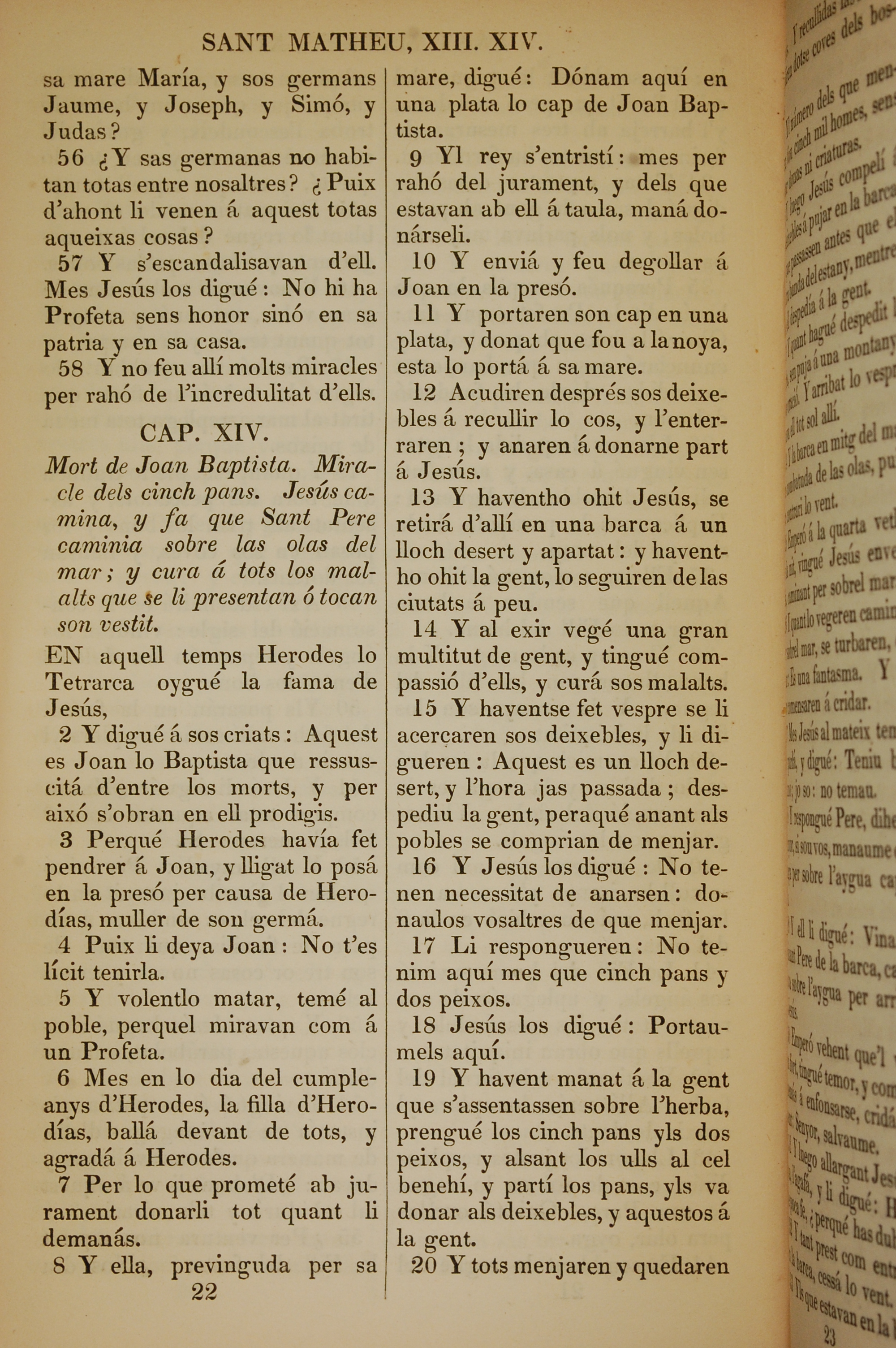 1835年加泰羅尼亞語新約全書 馬太福音 13 章 56 節到 14 章 20 節
