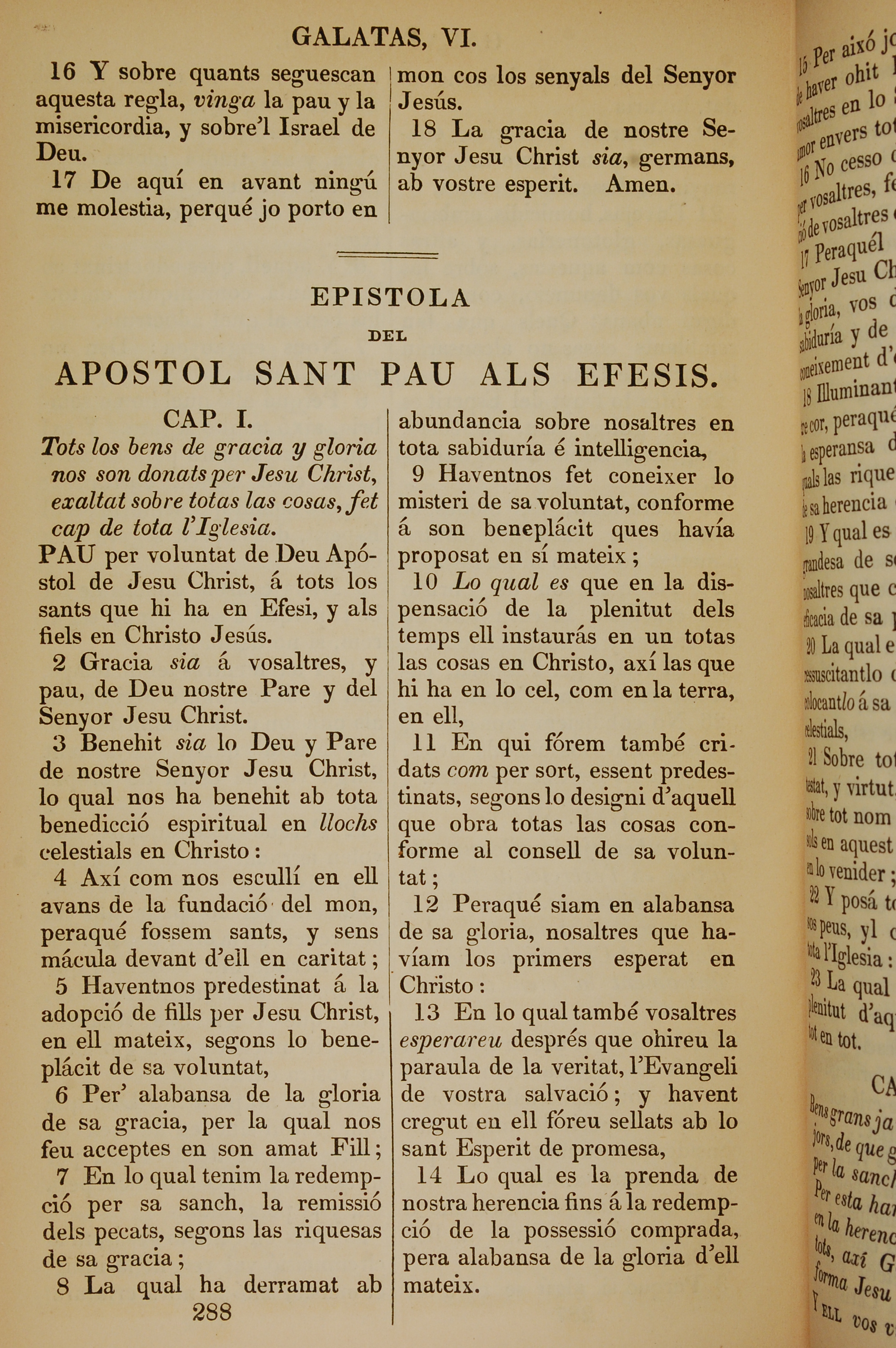 1835年加泰羅尼亞語新約全書 加拉太書 6 章 16 節到 6 章 18 節